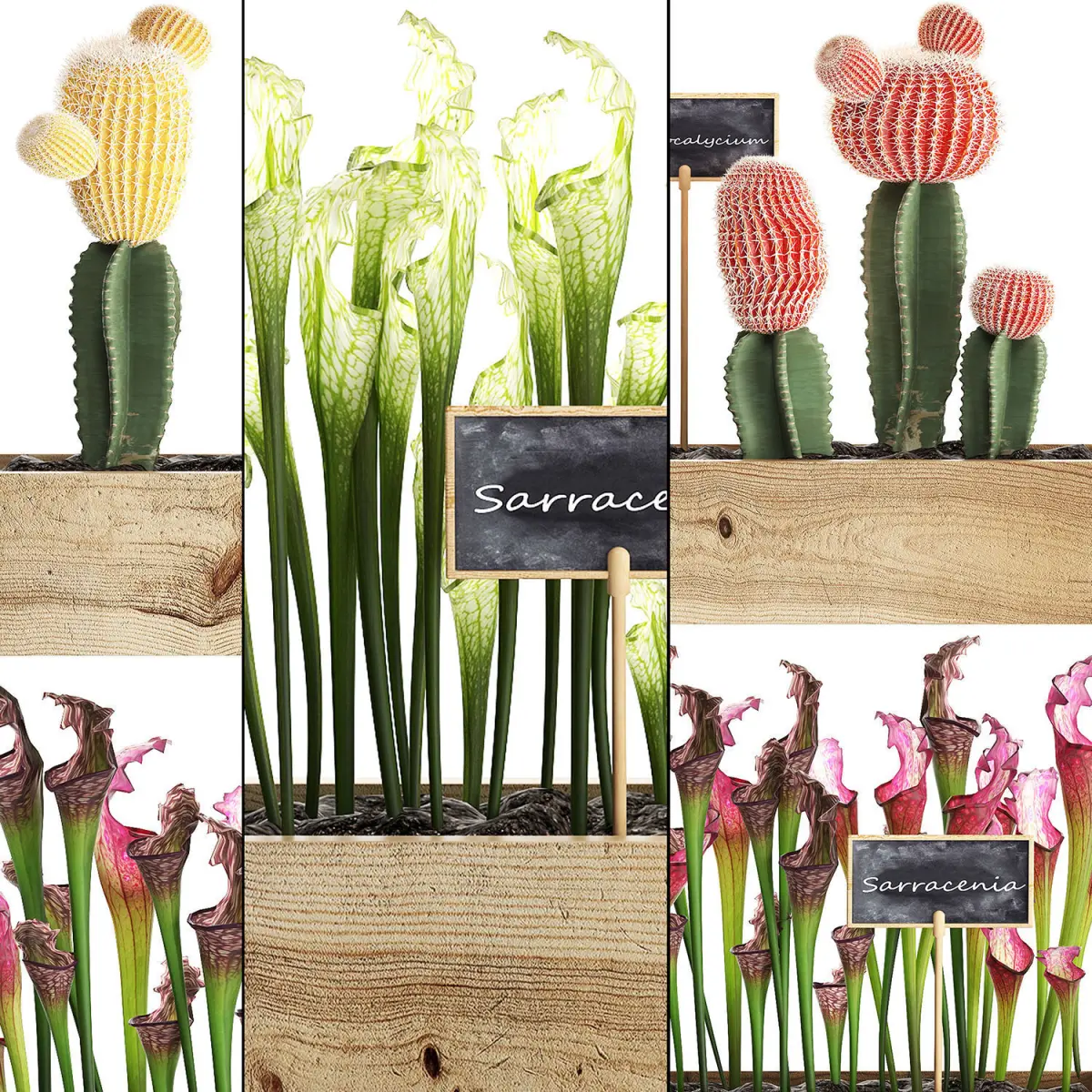 HomeCatalogCactus set wall decor vertical garden 44 3D model