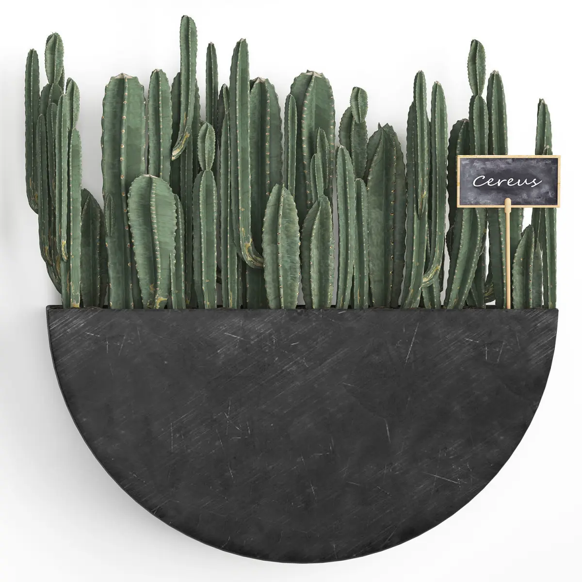 Collection of ornamental plantsExotic plantsHouseplantsCactusCereus repandusColumn CactusSaguaro cactusCarnegiacleistocactusEchinocactusSansevieria cylindricaWooden flower boxeswall decorvertical gardenSubpilocereusOpuntia microdasysEuphorbia trigona