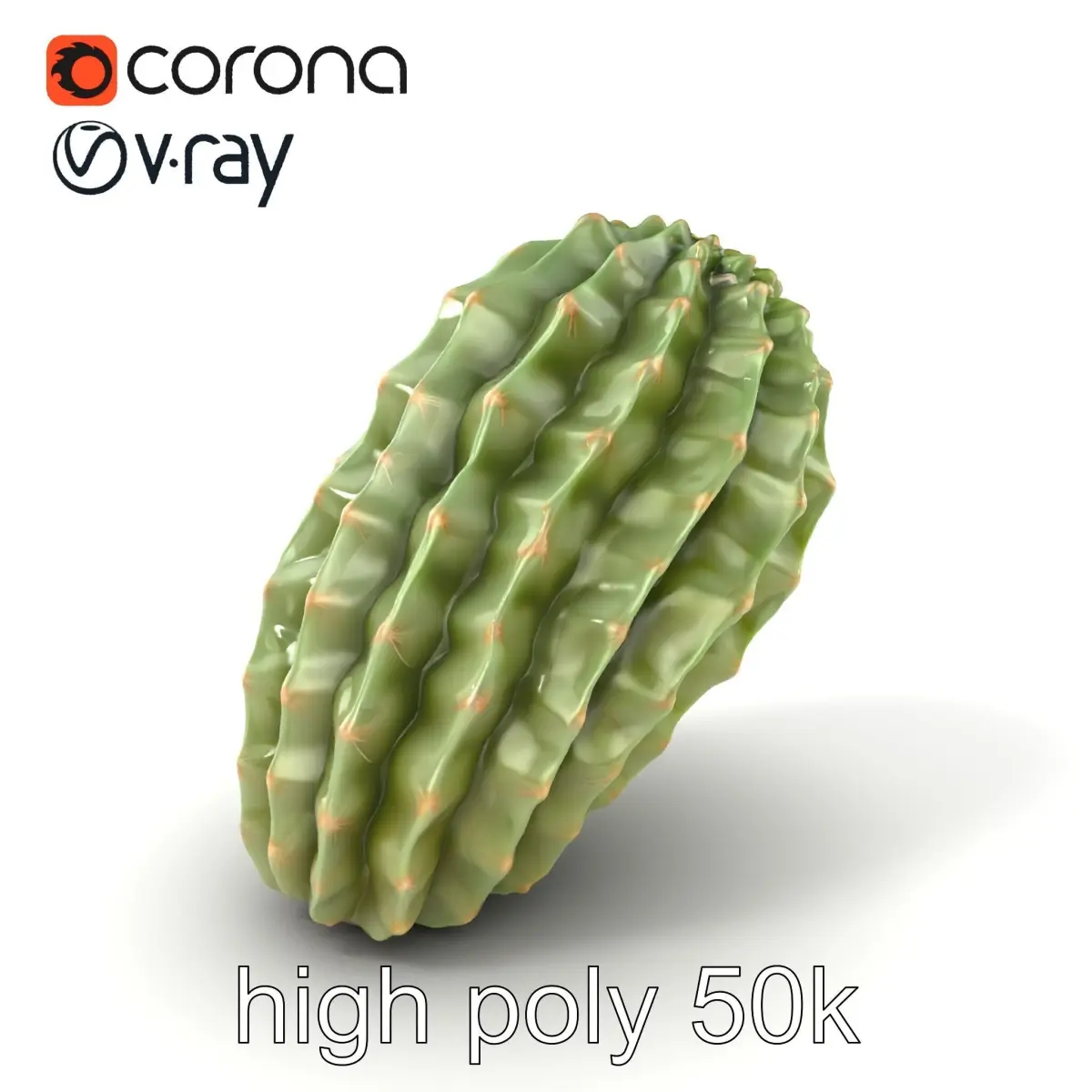 Each model has 3 levels of detail: low-poly, middle-poly, and high-poly, which allows for the use of this model in production rendering (such as 3ds Max, Maya, Cinema 4D, Blender, Vray/Corona/Cycles, and all others), game engines (Unity and Unreal compatible), and interactive presentations, providing a choice of detail based on the LOD System principle. Ideal for desert landscapes, botanical simulations, or stylized game environments, this model features overlapping segments with a wrinkled surface and a slight sheen.
