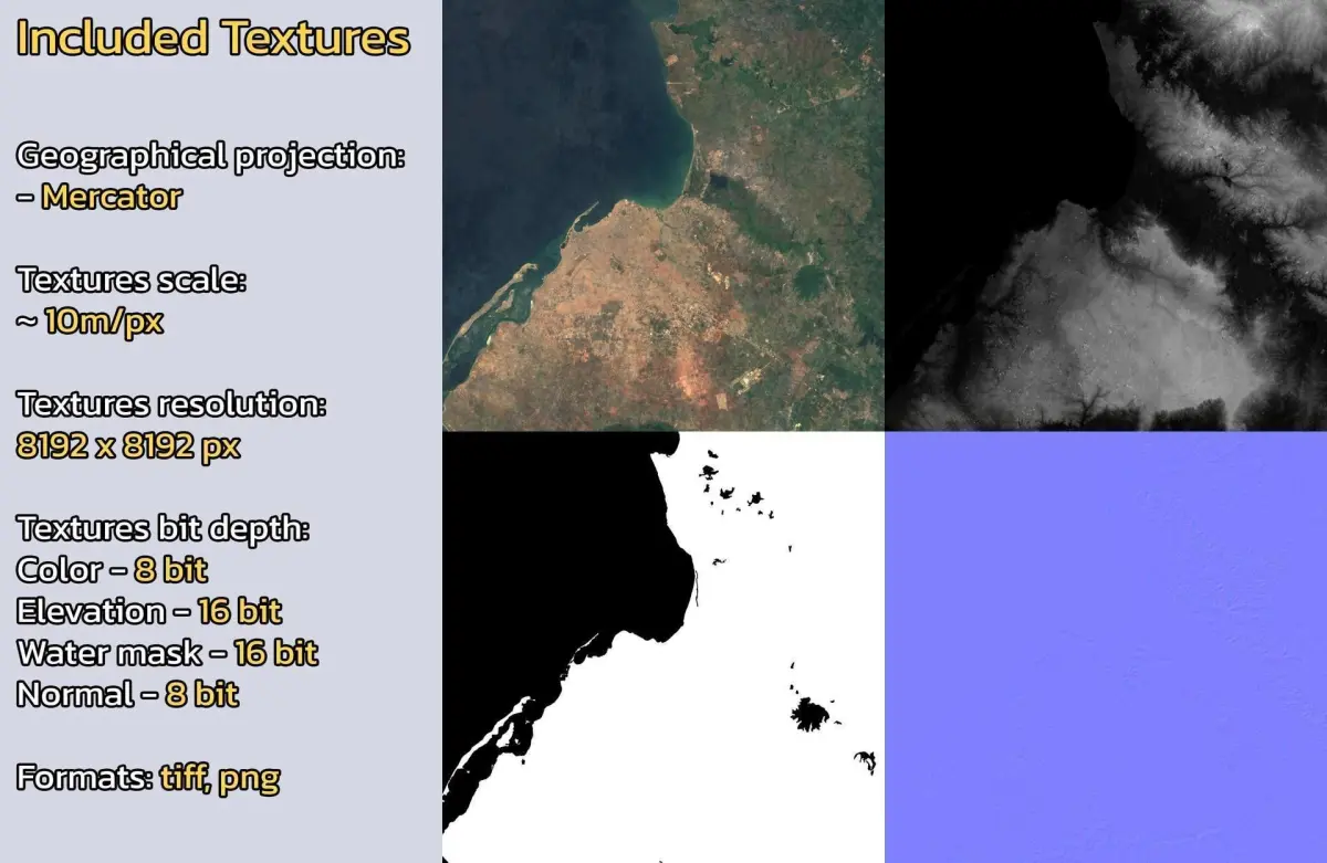 - Textures resolution: ~10m/px