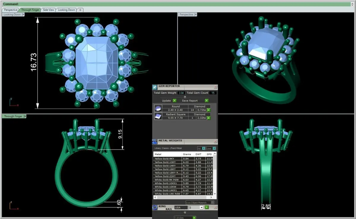 Ring Size Gold Metal Weight in dfferent Karats like 14k, 18k, 22k Gem Stone weight ( Carat Weight ) for all stones in the Model also Quantity of Stones. Dimensions of the Model in mm (millimeter) unit. Delivery Contains 11 files as following :