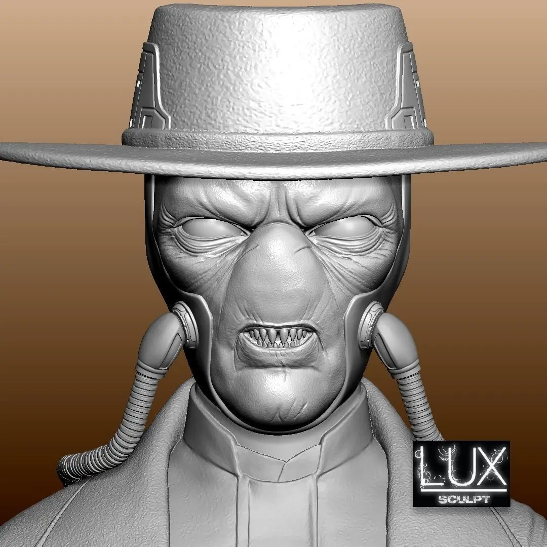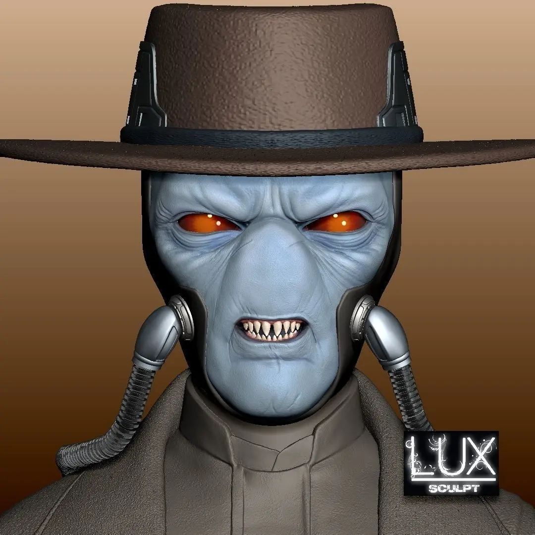 Cad Bane from The Book of Boba Fett TV show, sculpted as a 1:6 scale bust! Individual pieces include different head pieces, hat, tubes, air tanks (including one without a cube key), torso and the separated base. In the bundle, you get four different types of head pieces, with different face expressions (Disclaimer: although every piece has been made to fit each other, further sanding of the prints may be necessary depending on the precision and settings used on the printer).
