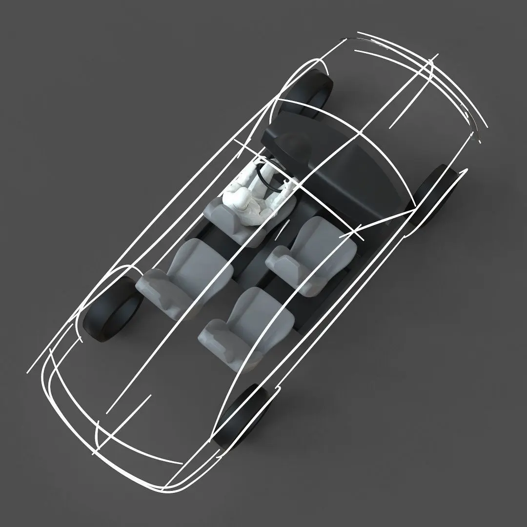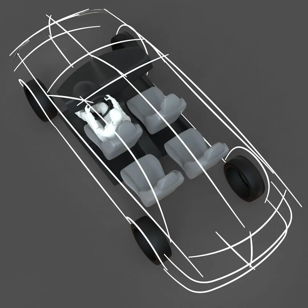 Template for creating your own car design with ergonomic driver's seat. Solidbody and NURBS geometry compatible with most CAD-systems like CATIA, Autodesk Inventor, Rhino3D, SolidWorks, NX etc. The driver dummy is a solid model. File formats familiar to engineers: STEP, X_T (Parasolid), IGES, DWG, 3DM