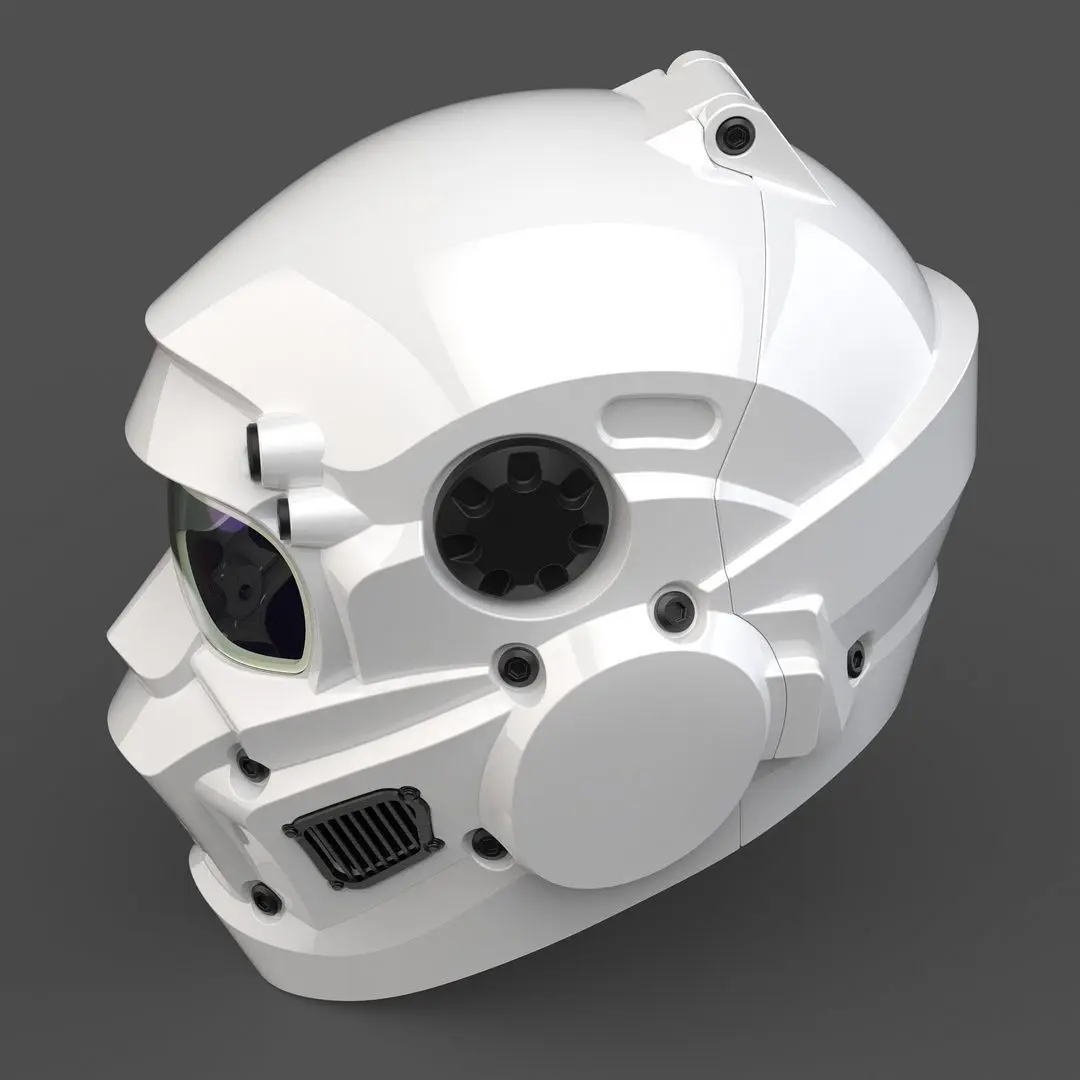 The helmet model H1V1 is presented in solidbody/NURBS and polygonal formats. It can be used for 3D printing, CNC-milling, as well as for visualization in your projects. All parts are separate objects.The helmet was created for the head with circumference size 605 mm (23.8 inches), But you can just resize to your desired.The back of the helmet pivots for ease of donning. It is mounted on two latches and two guides.