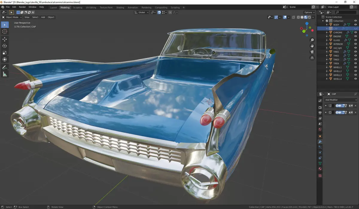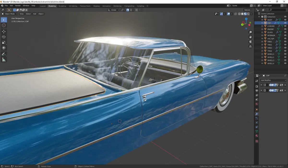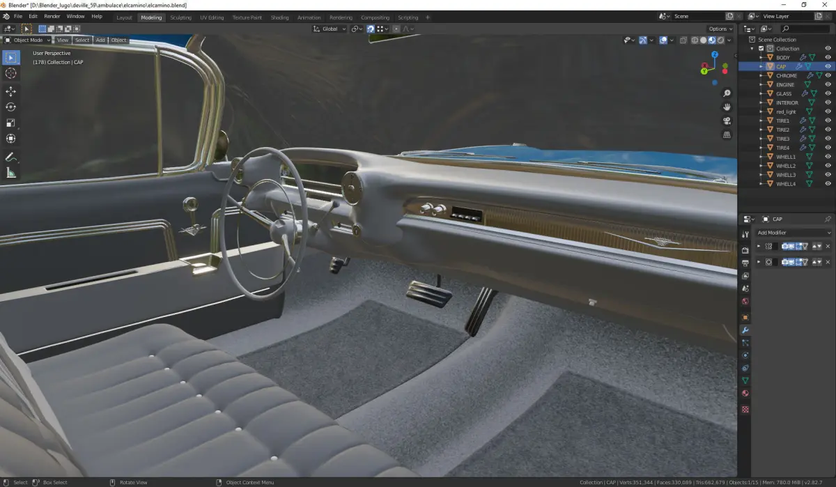 vehicle modeled as close as possible to reality, all meshes are modeled in low polygon with the subdivision modifier applied but not collapsed, all meshes are mapped and painted, clean geometry, without ngons.