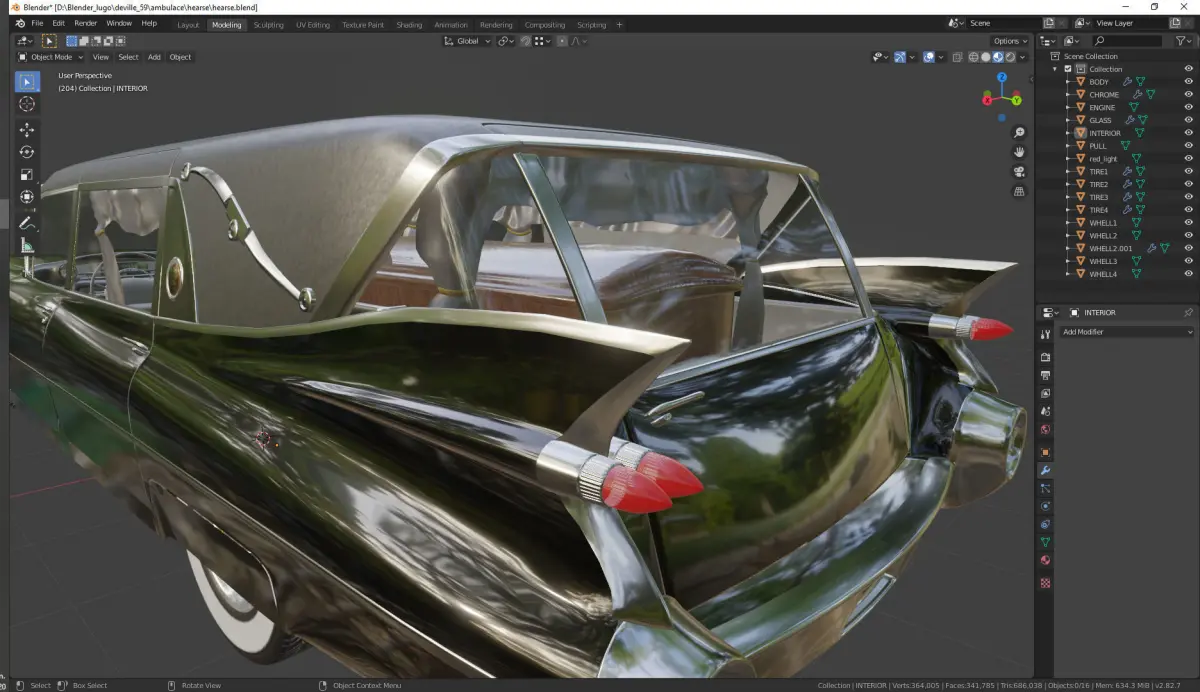 vehicle modeled as close as possible to reality, all meshes are modeled in low polygon with the subdivision modifier applied but not collapsed, all meshes are mapped and painted, clean geometry, without ngons.