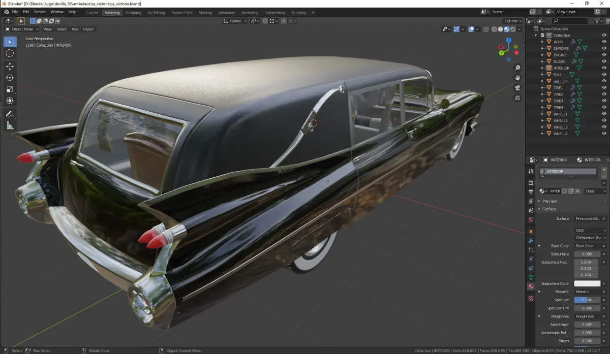 vehicle modeled as close as possible to reality, all meshes are modeled in low polygon with the subdivision modifier applied but not collapsed, all meshes are mapped and painted, clean geometry, without ngons.
