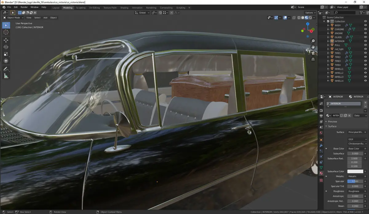 Blender 2.82 modeling, substance painter shading (metalic- roughness), keyshot renderings, you can change any body color from base color in the Principal BFDS material , polys:339065, vertx360807, all faces positive orientation, formats: OBJ, FBX, 3DS, BLEND, STL. MAX, DAE