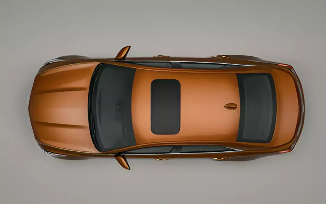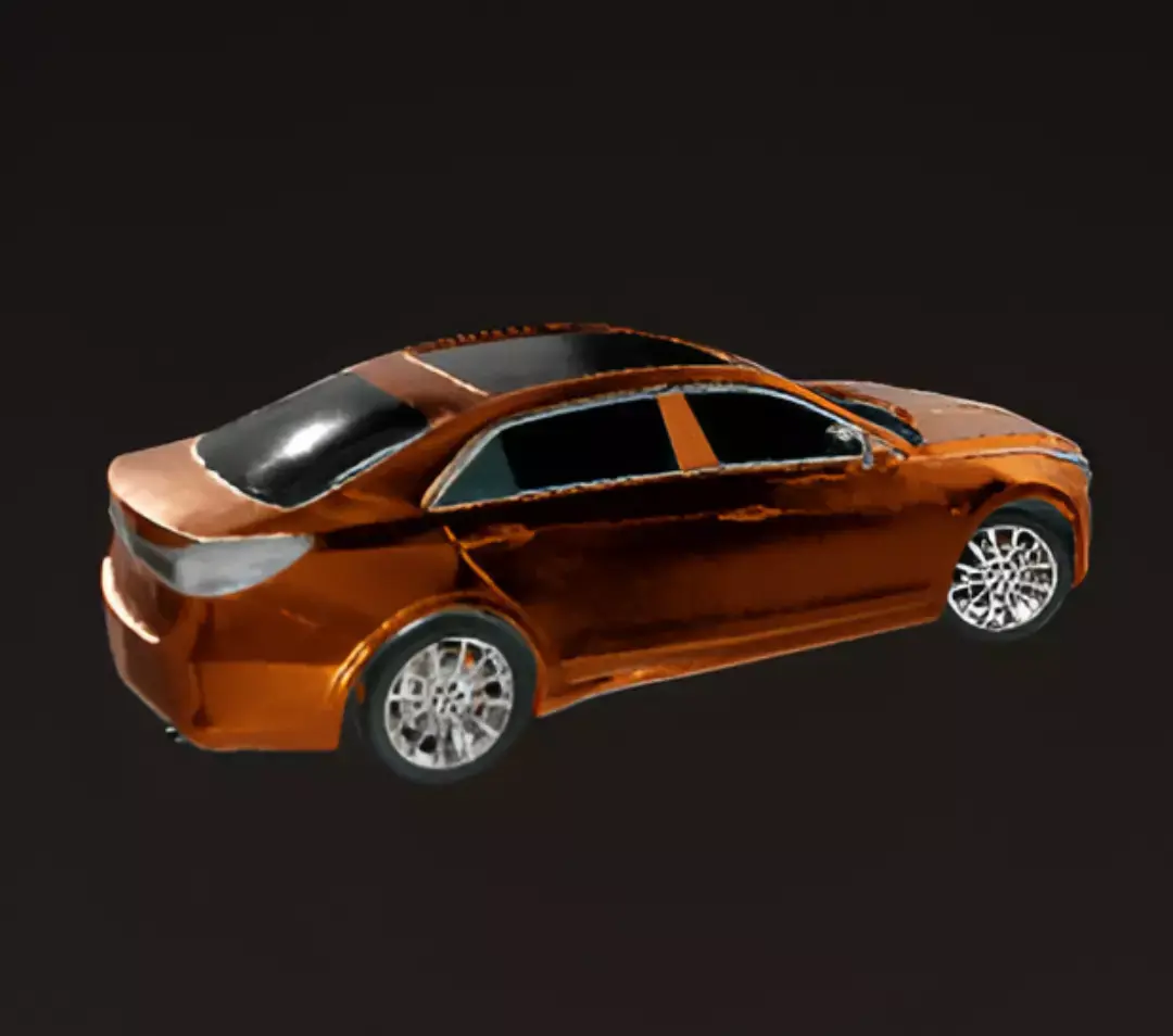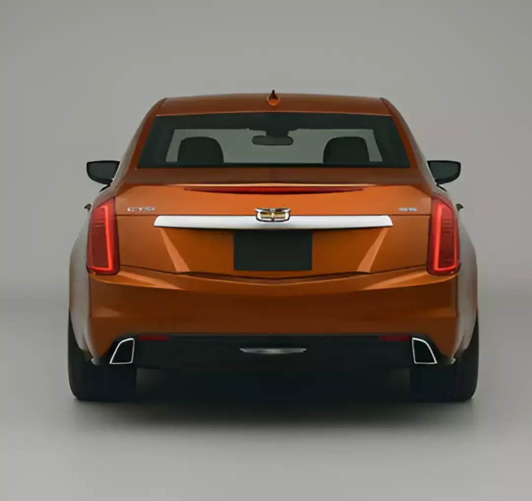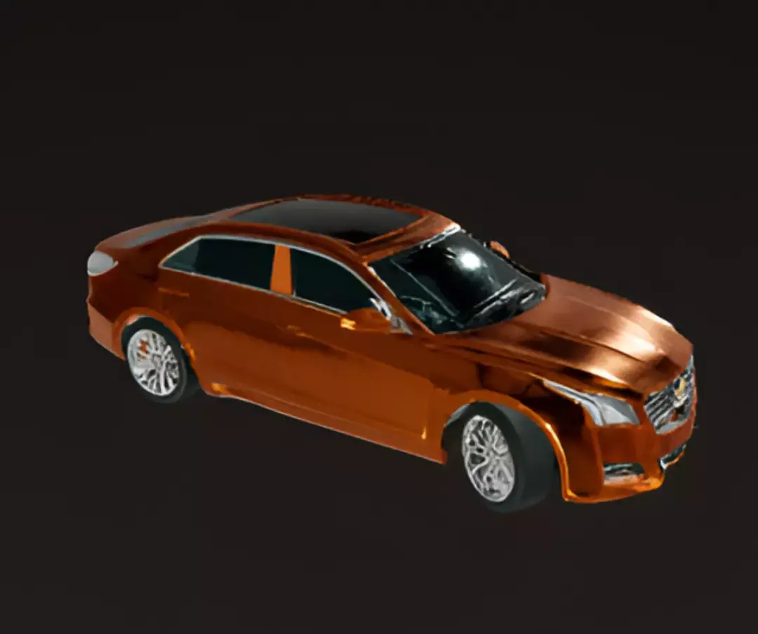 A polished, copper-colored Cadillac sedan is shown from a front-quarter view in a clean, studio setting. The car's sleek and modern design is highlighted by its distinctive vertical LED daytime running lights, a large, prominent grille with the Cadillac crest, and a sharp, angular body style. The metallic paint has a deep sheen, giving the car a premium and elegant appearance. The multi-spoke alloy wheels and chrome trim accents add to the luxurious feel. The lighting in the image emphasizes the car's sculpted lines and refined details.