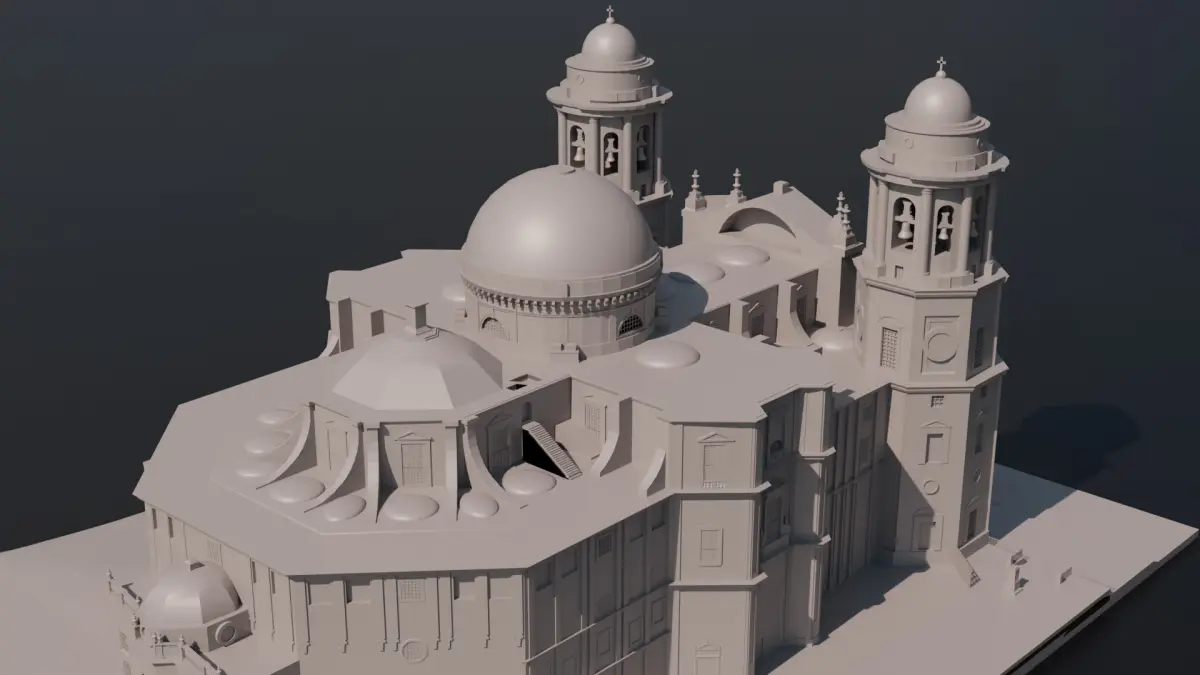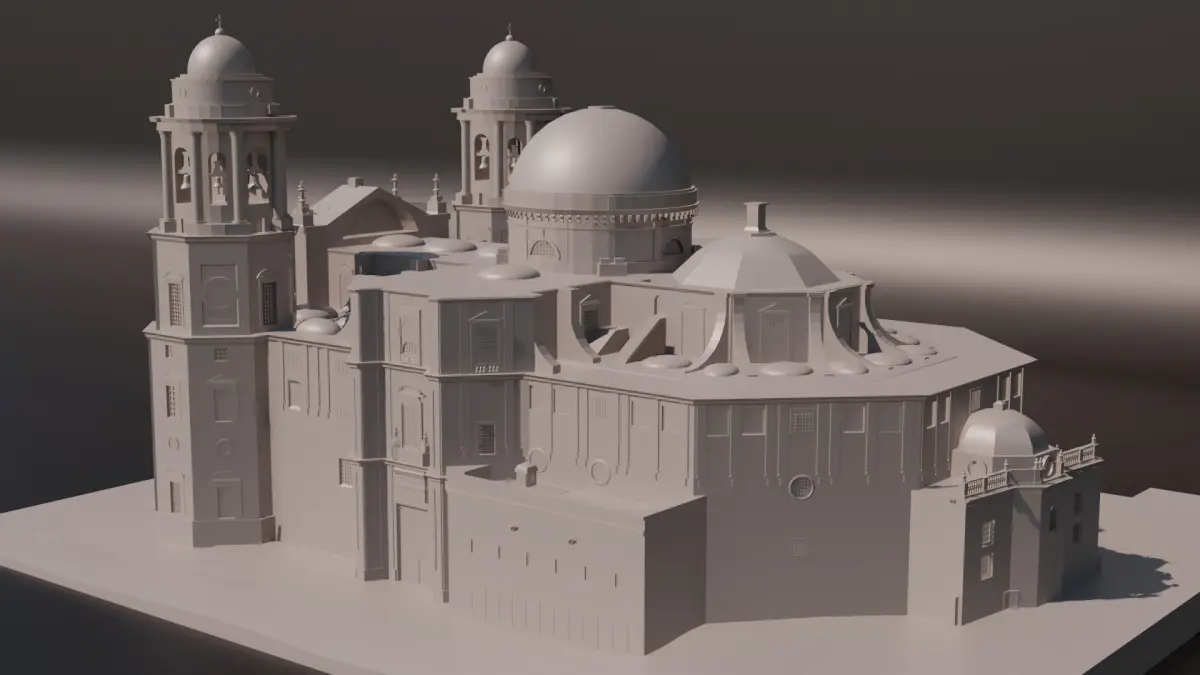Discover the architectural majesty of Spain with this detailed 3D model of the Cadiz Cathedral. This digital recreation captures the essence of this Baroque and Neoclassical gem, highlighting its iconic twin towers, imposing dome and elaborate façade.
