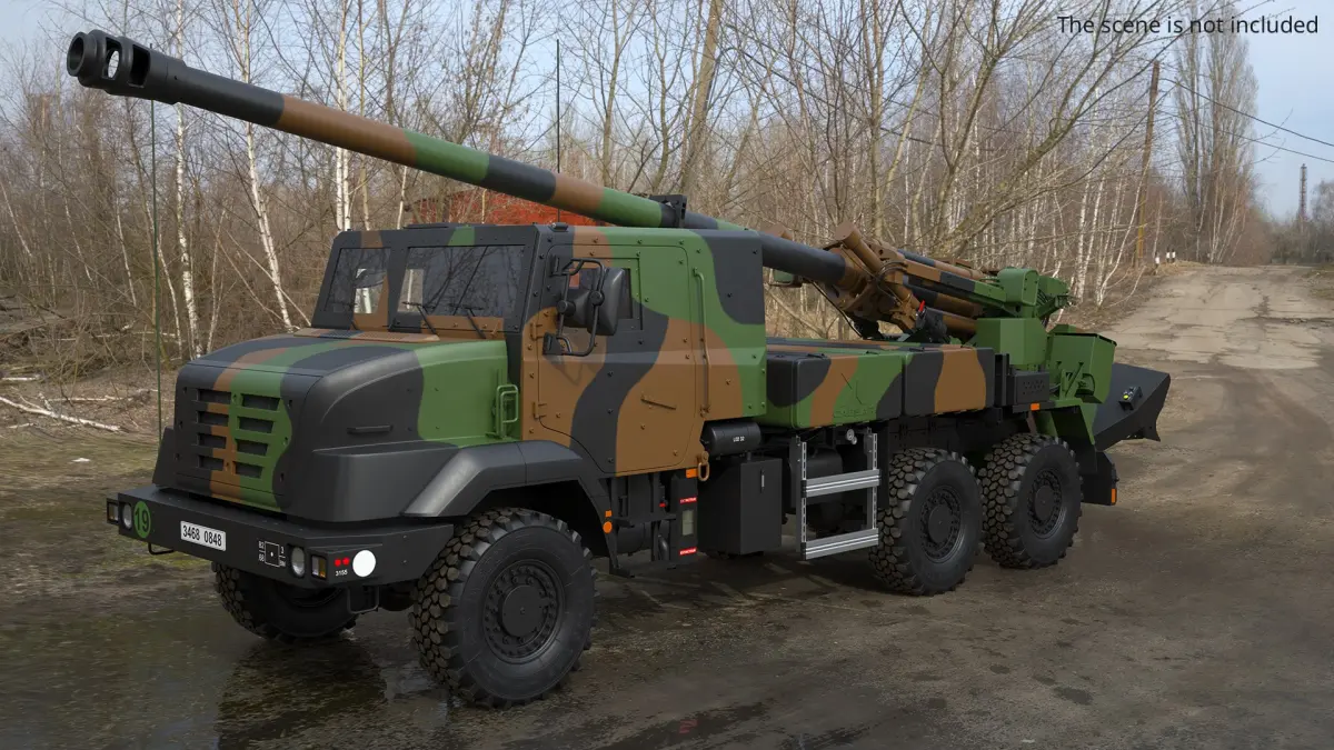 CAESAR 155mm Self-Propelled Howitzer Camouflage is a three-dimensional model of the French truck-mounted artillery system, designed to combine mobility, precision, and firepower for modern battlefield operations.