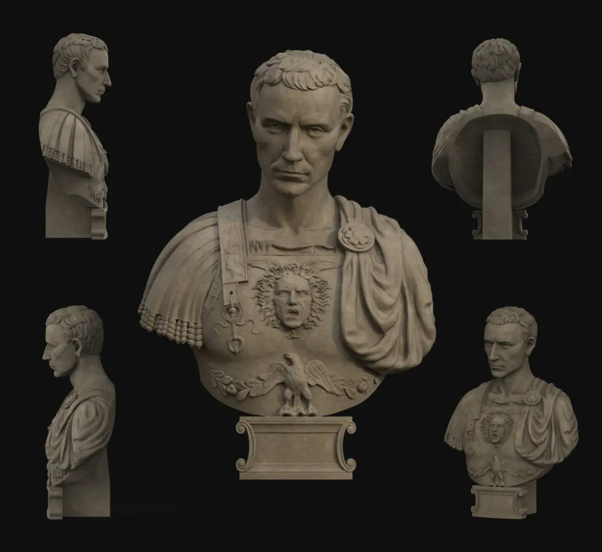 Caesar Bust 3D model. UV mapped + textures.