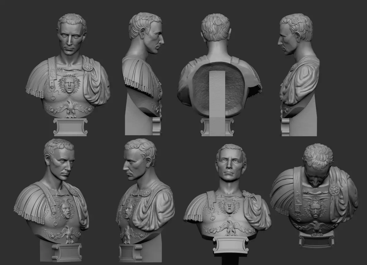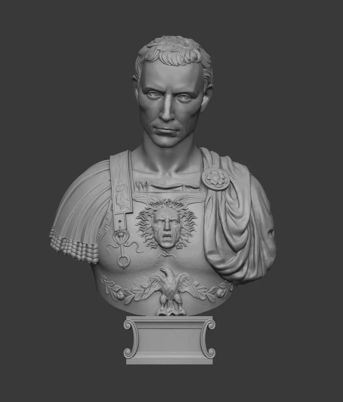 A 3D printable bust of Julius Ceasar. Created in Zbrush and checked in Netfabb. There is a UV mapped and textured version of this model available in the Regular 3D Model section in CGtrader. I am happy to answer any questions about the sculpture you might have.