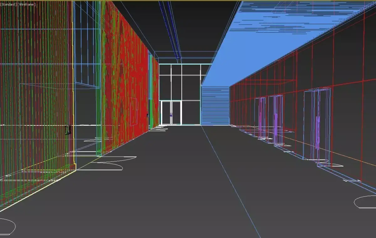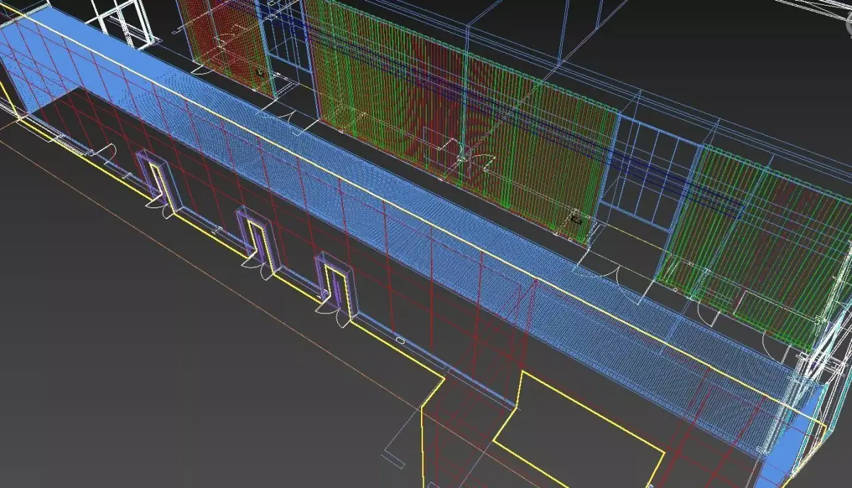Low-poly setup with essential architectural features for fast rendering and flexibility.