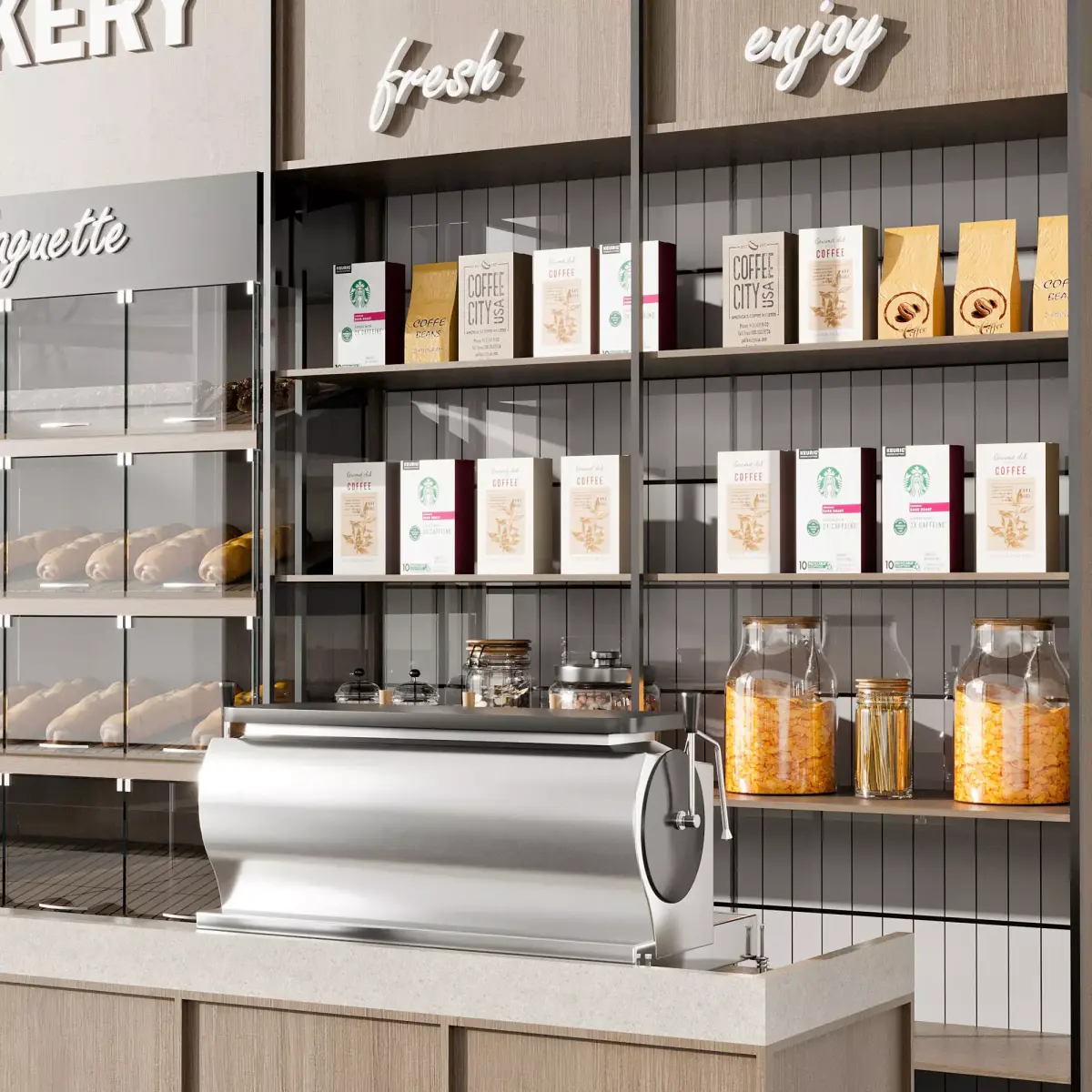 This 3D model is ideal for modern cafes, pastry shops, coffee corners, food courts and retail interior visualizations.
