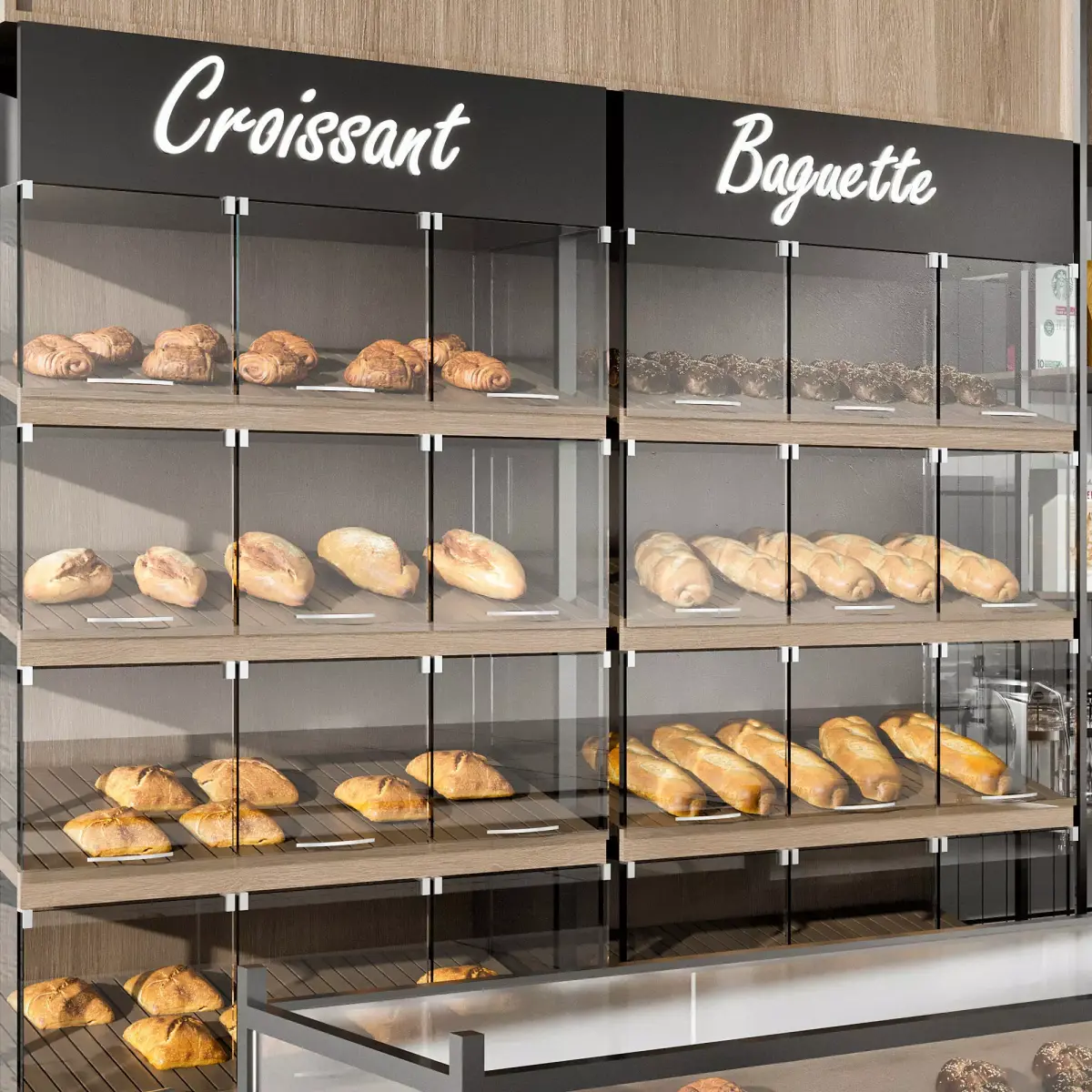 Bakery Wall Display with Bread & Pastry Shelves