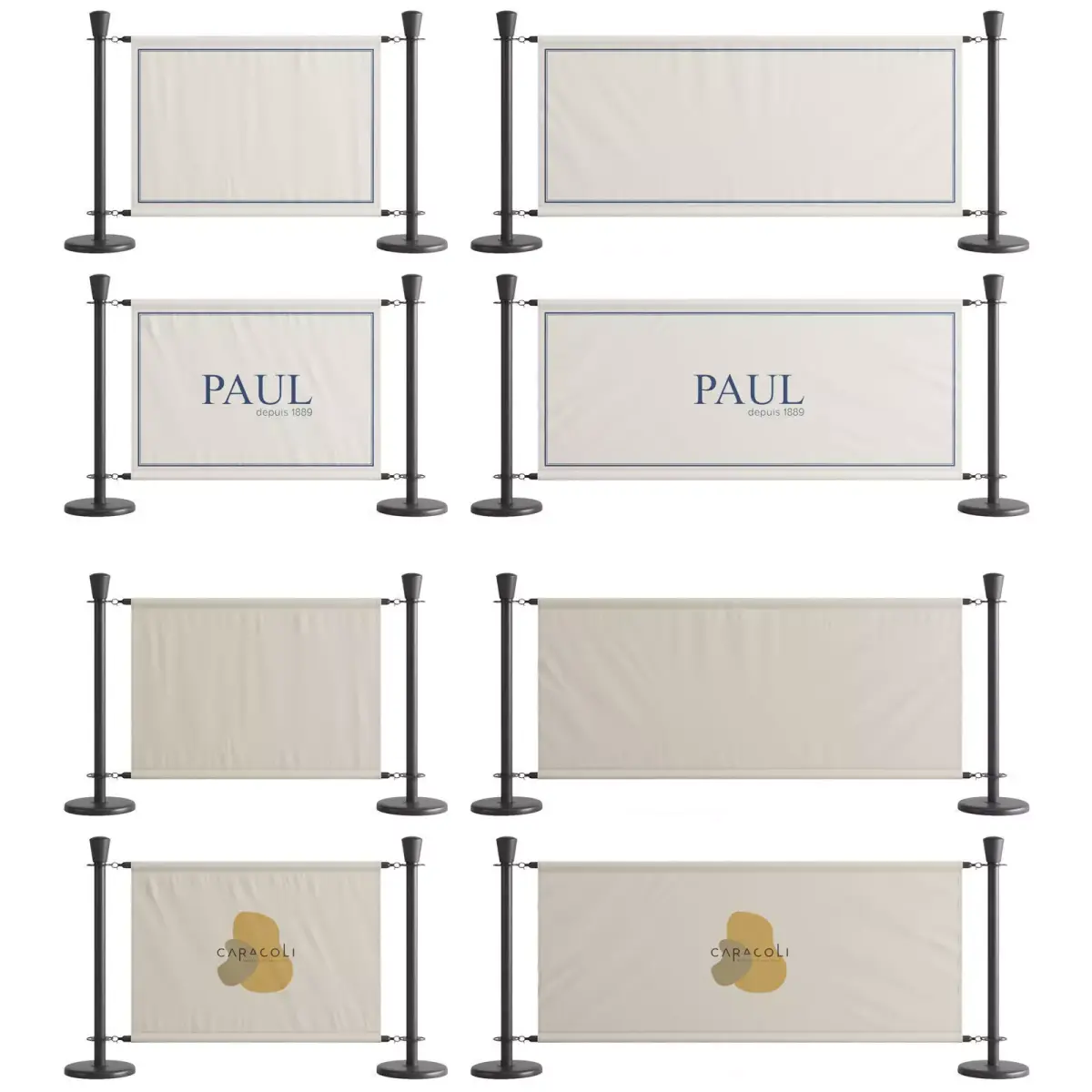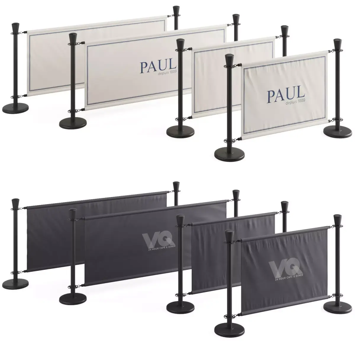 A high-quality set of outdoor café barriers featuring four well-known independent coffeehouse and bakery brands: PAUL, Caracoli, VQ, and Matamata. These models are designed for realistic exterior scenes, terrace layouts, and restaurant visualization. Clean topology ensures easy customization, while TurboSmooth is included and activates only at render time, keeping the viewport light. The set contains both short and long barrier versions: short section — 115 cm, long section — 197 cm, total height with posts — 110 cm. Ideal for commercial visualization, branding concepts, and realistic outdoor environments.