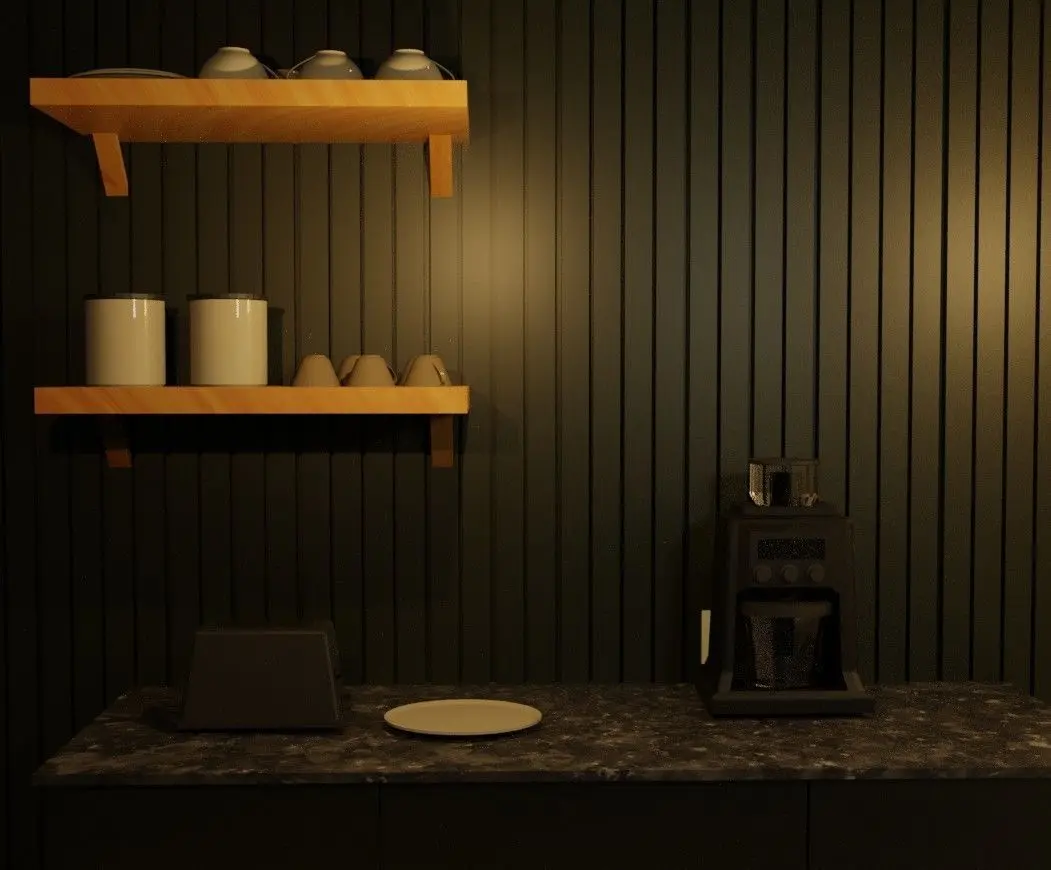 This project has a beautiful dark look with warm light in it. Includes some of the basic cafe objects.