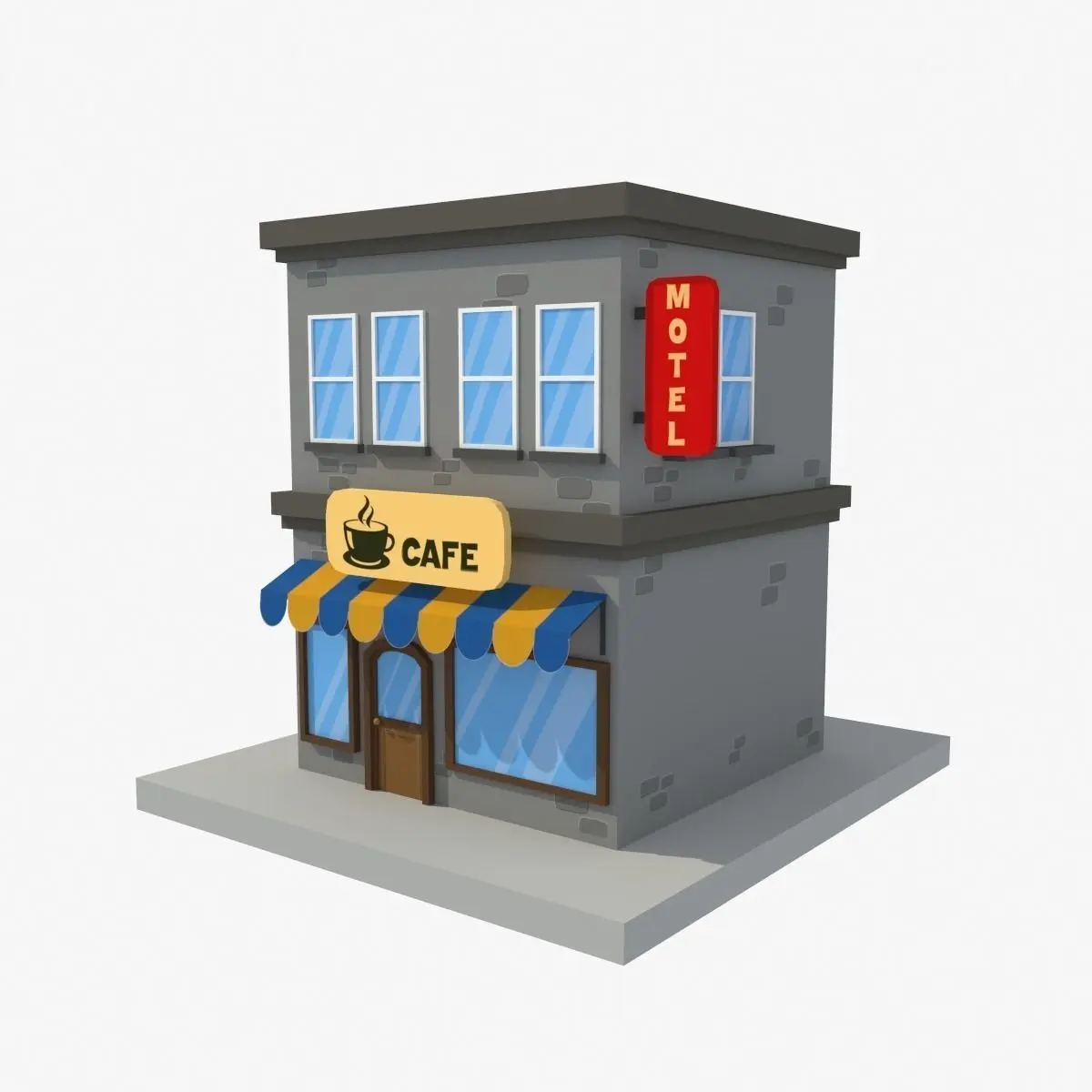 Buy cafe motel cartoon building low poly Low-poly 3D model