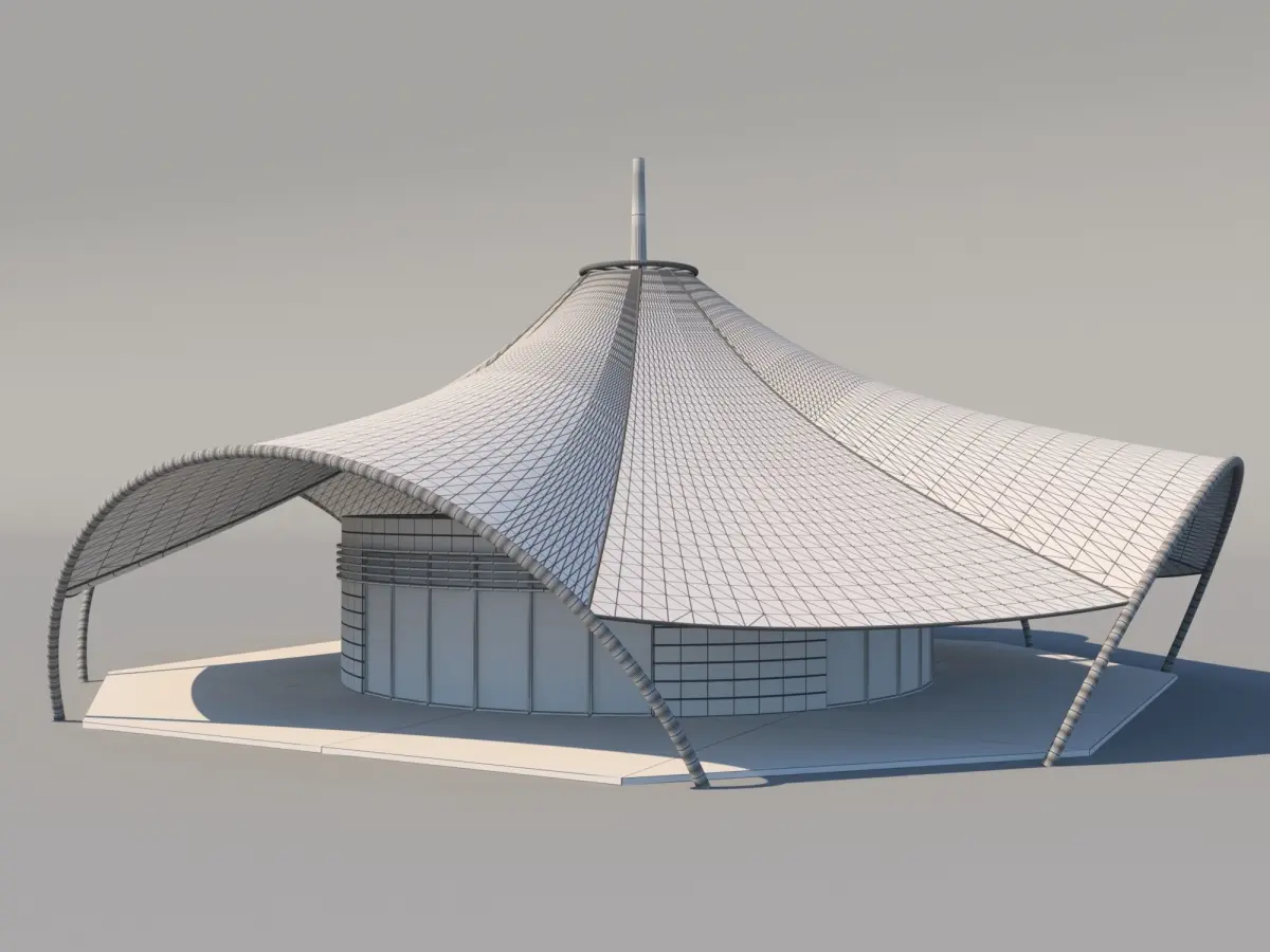 Cafe with membran 3d model created with 3ds max 2017 and rendered with vray 3.40.