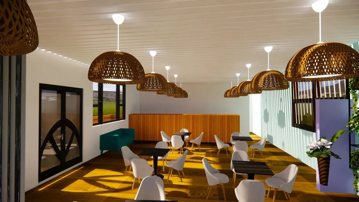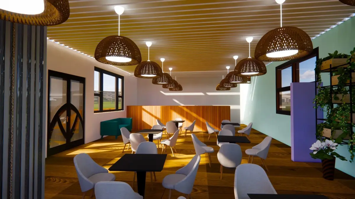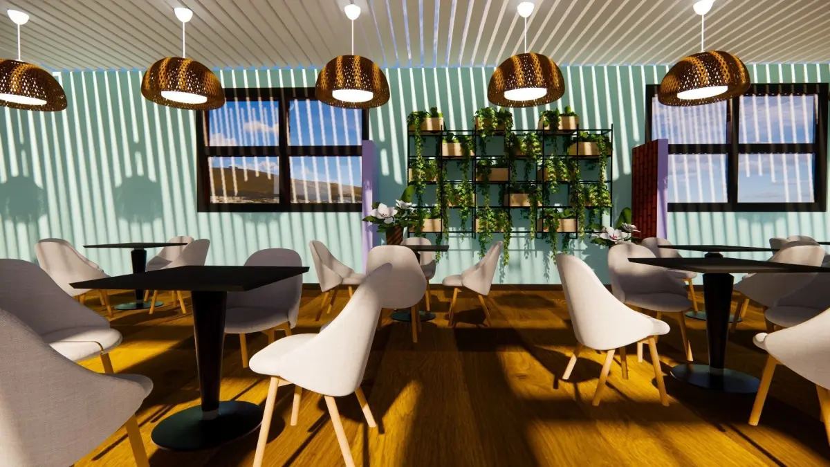 Cafeteria interior of restaurant with tables and chairs 3D model