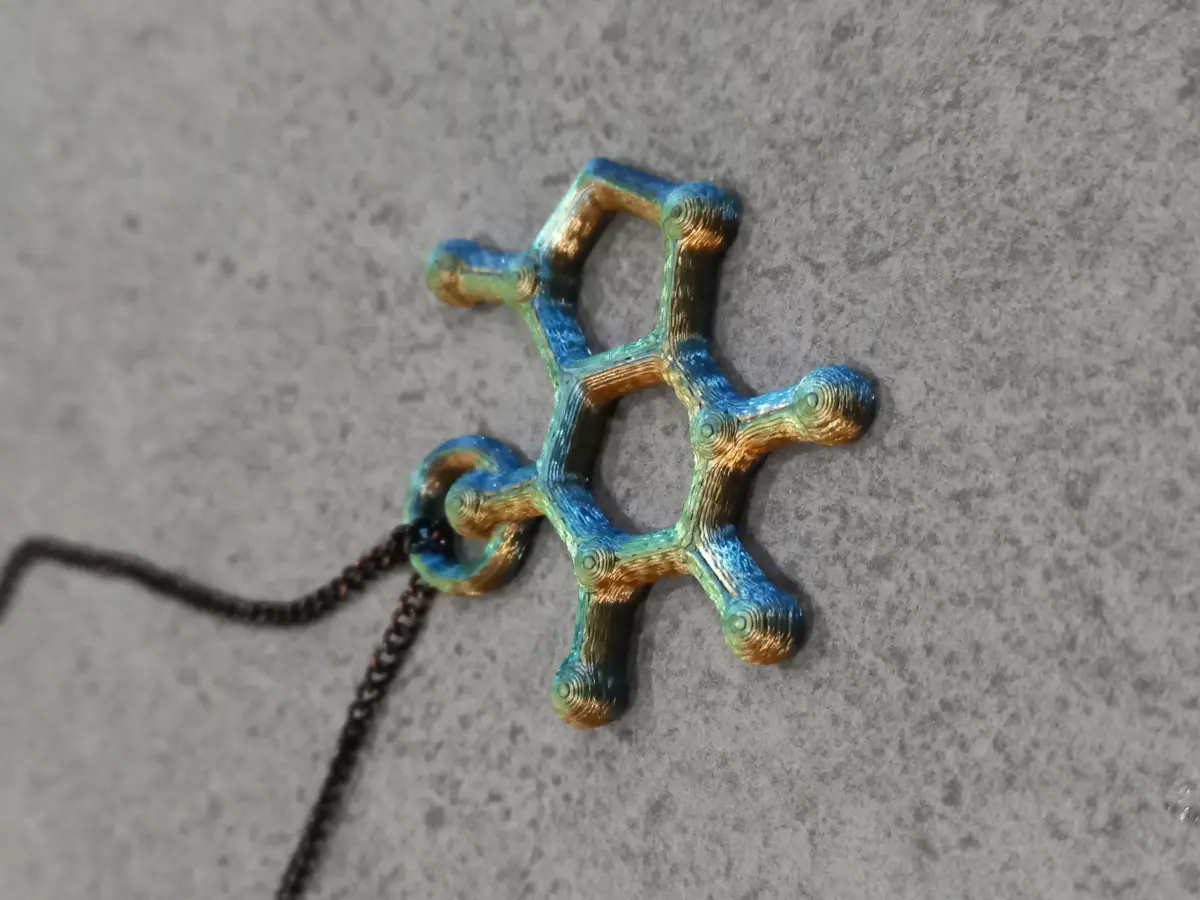 Description of 3D Printed Caffeine Molecule Model: Indulge in the fusion of science and art with this 3D printed caffeine molecule model. Designed by an Italian artist, this intricate representation pays homage to the iconic coffee culture of Italy. No Support Printing: the model can be printed without supports, ensuring a smooth and accessible 3D printing experience. Printability: Designed with simplicity in mind, this model is easy to print, making it suitable for both science enthusiasts and art aficionados. Bring a touch of scientific elegance and Italian coffee tradition into your space. Download and print this caffeine molecule model to display your appreciation for both the molecular wonders and the delightful aroma of the coffee. Made by Alessia Lorenzi.GCODE ready for Creality K1 max: