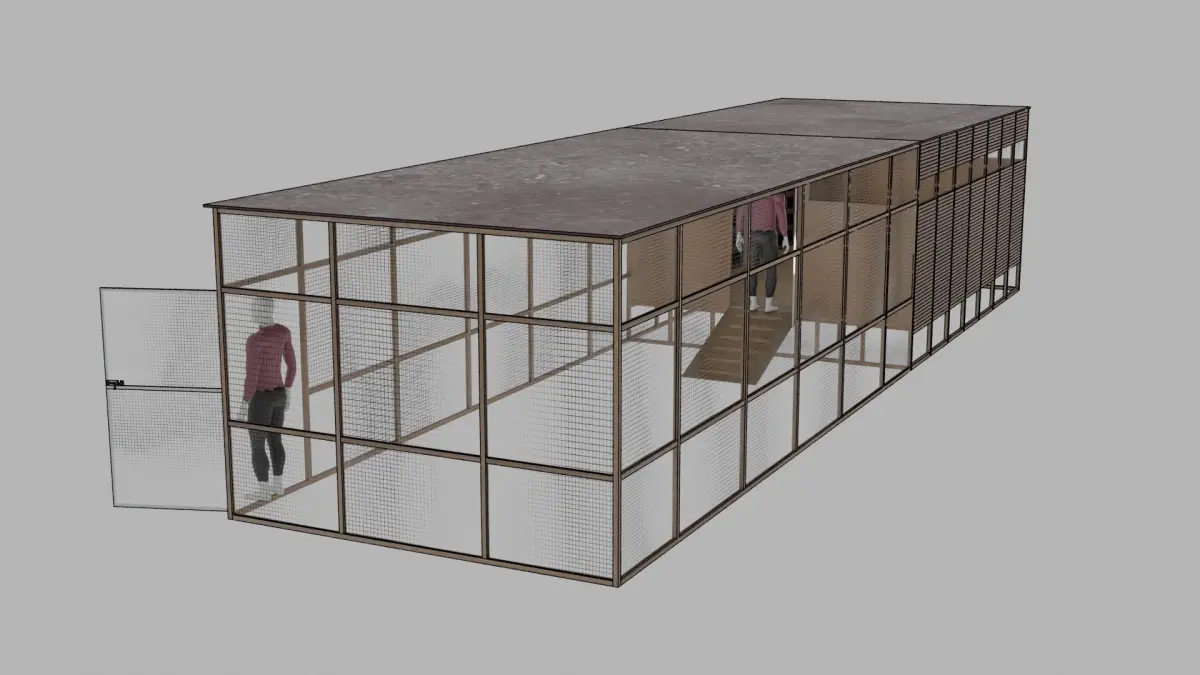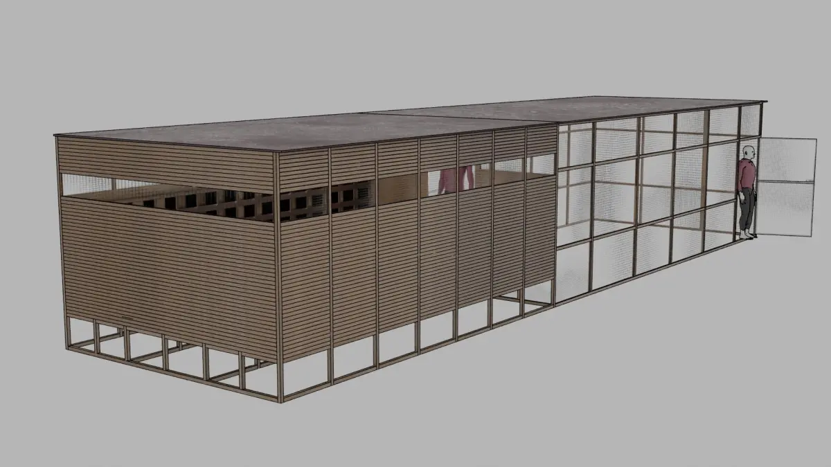 This is a cage for a minimum of 100 to a maximum of 150 chickens. it's an accurate measurement that you can use to build on your farm or if you want to use it for your animation or 3D scene you can use it too. The cage is divided into two areas one is the sleeping and laying eggs area and part is the free area where there's more airflow and sunlight.