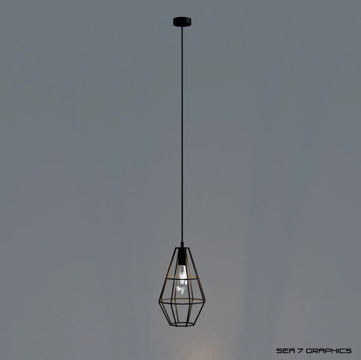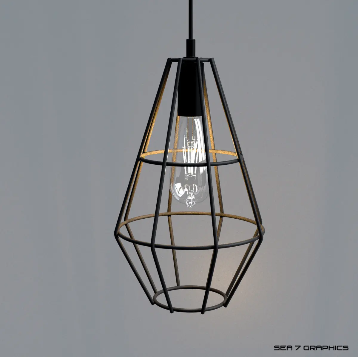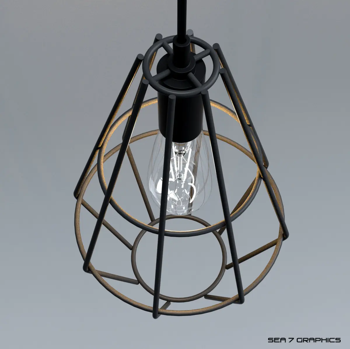 Detailed 3d model of an industrial cage lamp with a vintage bulb light | inspired by Brilliant Leonid