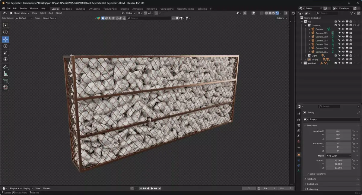 High-quality 3D model of cage rock stone featuring furniture item called cage rock stone for intorior or extorior decoration. The download includes the native Blender file with full material and lighting setup, as well as OBJ and FBX exports for compatibility with other software. Both high-poly and optimized low-poly meshes are provided, along with pbr textures (Color, Normal, Roughness, Displacement, and Subsurface Scattering). All assets are UV-mapped and ready for use in rendering, animation, or real-time projects.