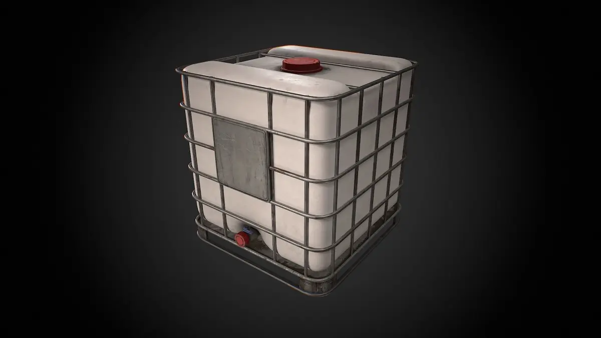 This is a game ready, 3d low poly model of a Caged IBC Tote with four different textures. Originally created with Maya