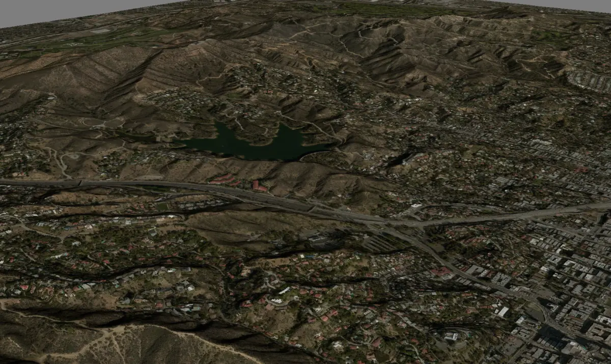 High detailed high polygon mesh from the realic Cahuenga Peak, Mount Lee, Beachwood Canyon, Griffith Park.