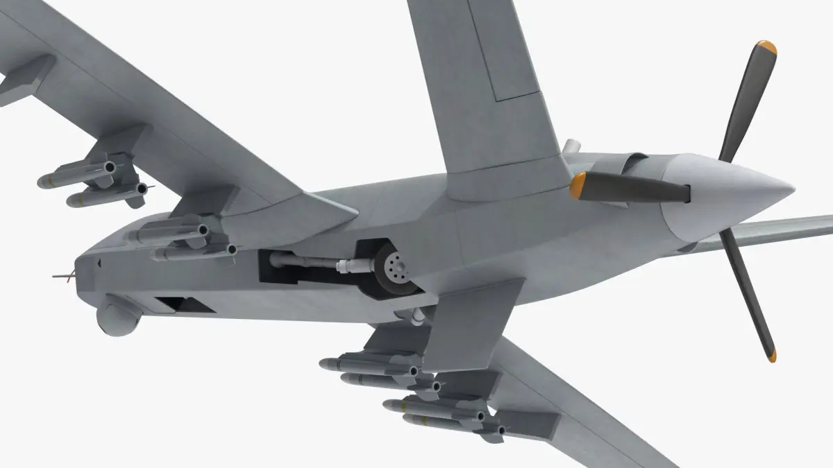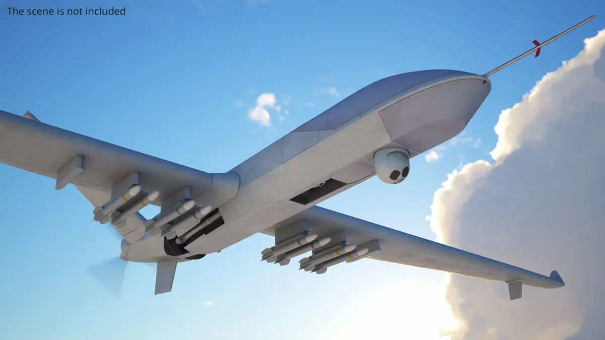 CAIG Wing Loong II Military Drone Vehicle Rigged is a 3d model of a military unmanned aerial vehicle (UAV) designed for intelligence, surveillance, reconnaissance, and armed operations.