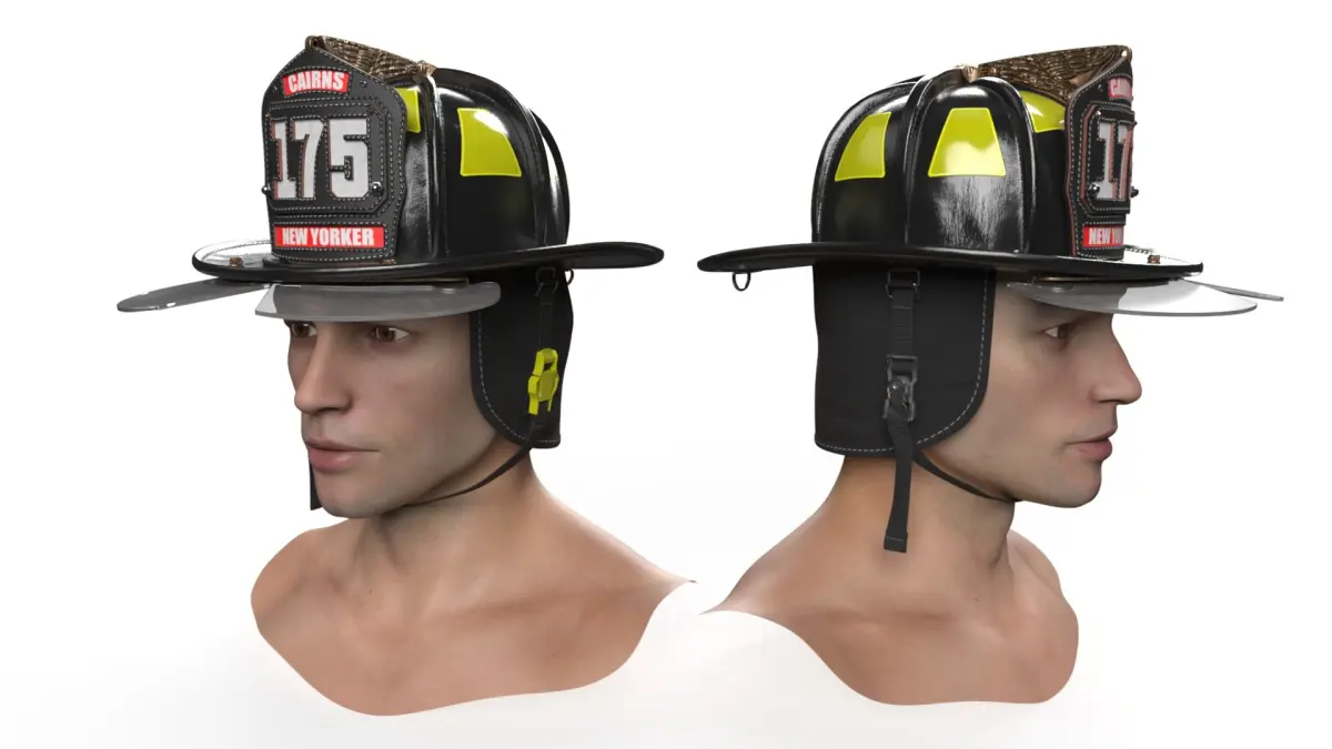 Cairns New Yorker Fire Helmet on Male Head is a high quality, photo real 3d model that will enhance detail and realism to any of your rendering projects. The model has a fully textured, detailed design that allows for close-up renders, and was originally modeled in 3ds Max 2020 and rendered with V-Ray. Renders have no postprocessing!