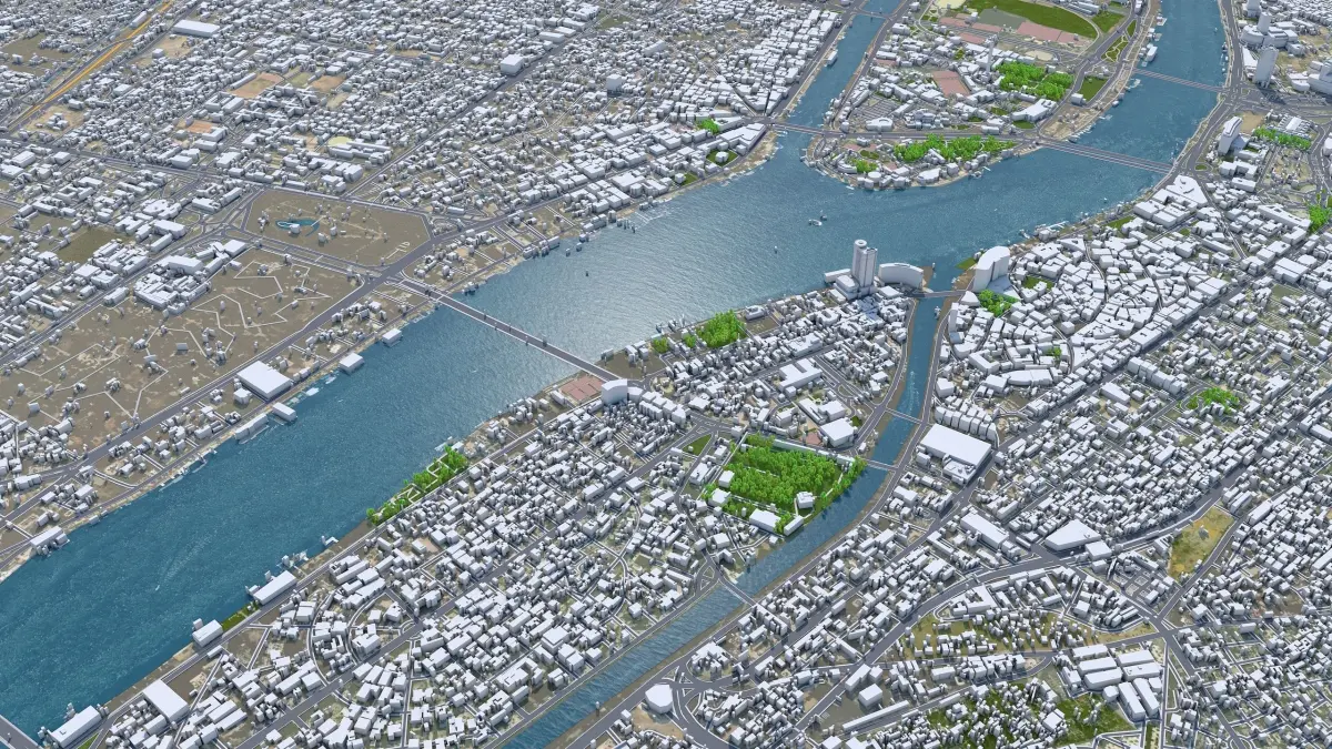 Accurate 3D city model and its surrounding area based on GIS data Year 2022