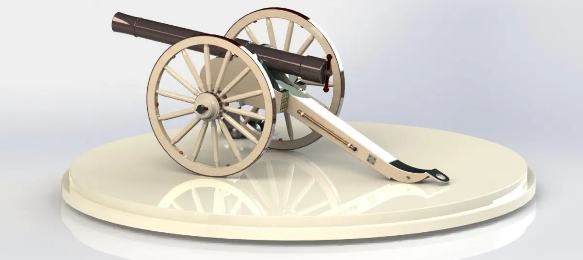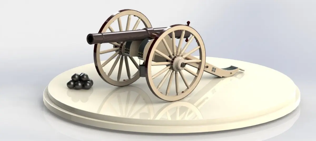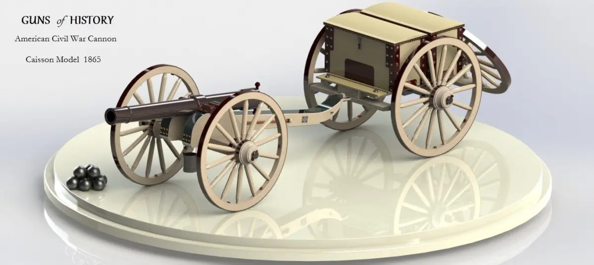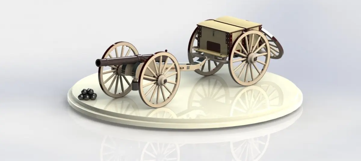 This kind of cannon was invented and used by the British artillery. Then its technology was adopted by Americans in 19th century and later it was used during Mexican War and American Civil War.The cannon has a bucket at the front, which was filled with tar or grease during war, and it was used to lubricate inside of the barrel after every shot.Two chests are placed on a carrier called caisson or limber which was fastened to the tail of cannon.The whole cannon was pulled by four or six horses.