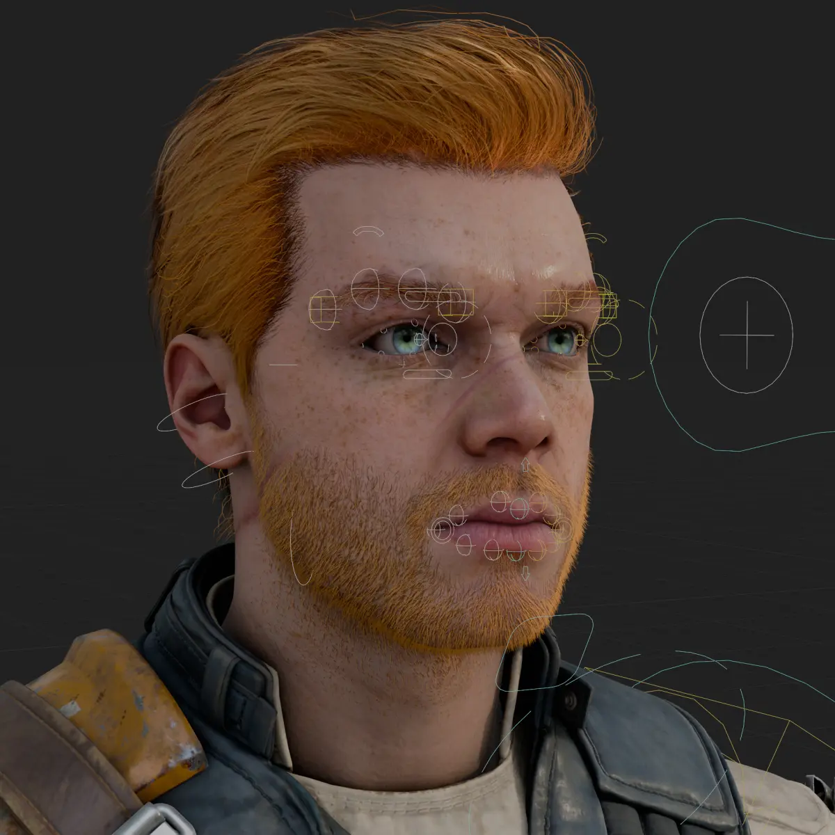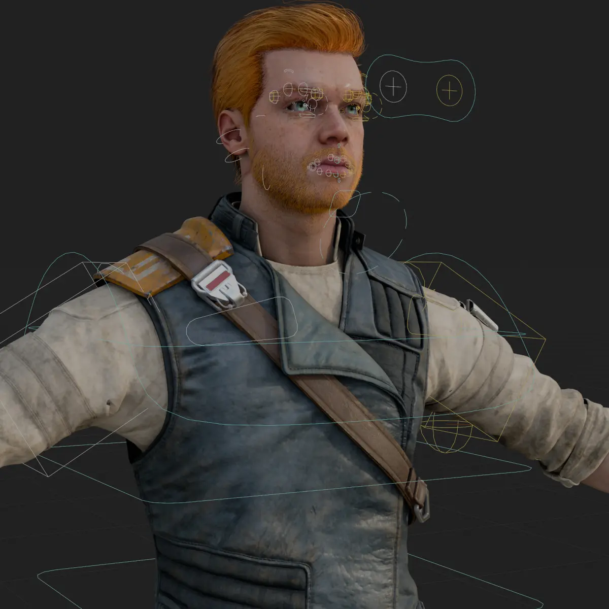 This production-ready 3D model of Cal Kestis from Star Wars Jedi: Survivor is fully rigged and optimized for use in animation, cinematics, and game development. Built with procedural enhancements for higher realism, the model includes rigged body controls, custom procedural eye shaders, and realistic skin deformation via geometry nodes. Delivered in Blender, FBX, and OBJ formats.
