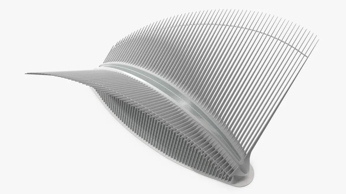 This model features sweeping curves and ridges, creating a sense of movement and fluidity. The interlaced pattern provides an intriguing blend of shadow and light, enhancing the dynamic form. Its sleek, metallic finish and intricate details make it a standout example of contemporary architectural design.