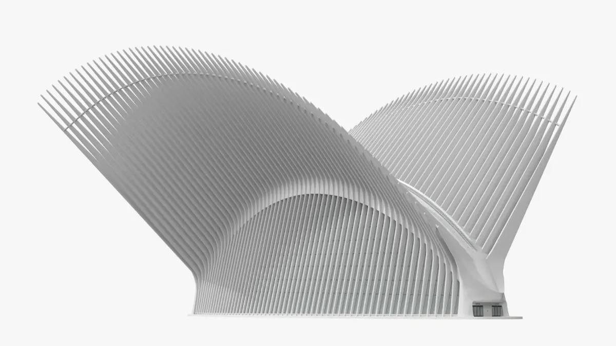 Calatrava’s Oculus Curved Transit Hall is a 3d model of a futuristic architectural structure, showcasing innovative design and modern aesthetics.