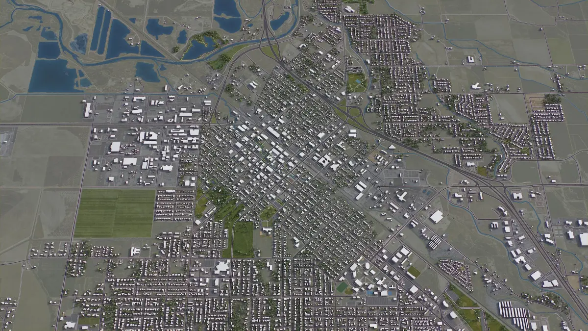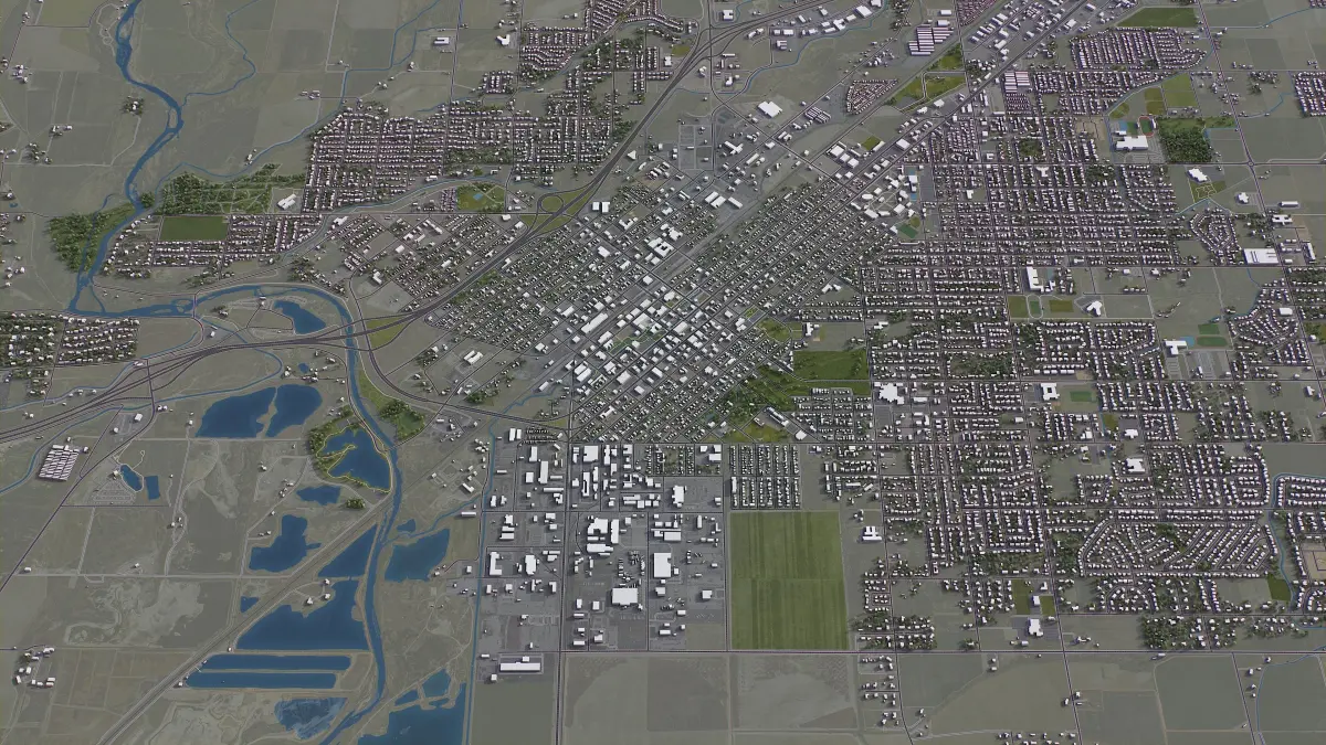 - Full city extents up to 100 x 100 km — or crop to an area of interest for better format compability and scene performance