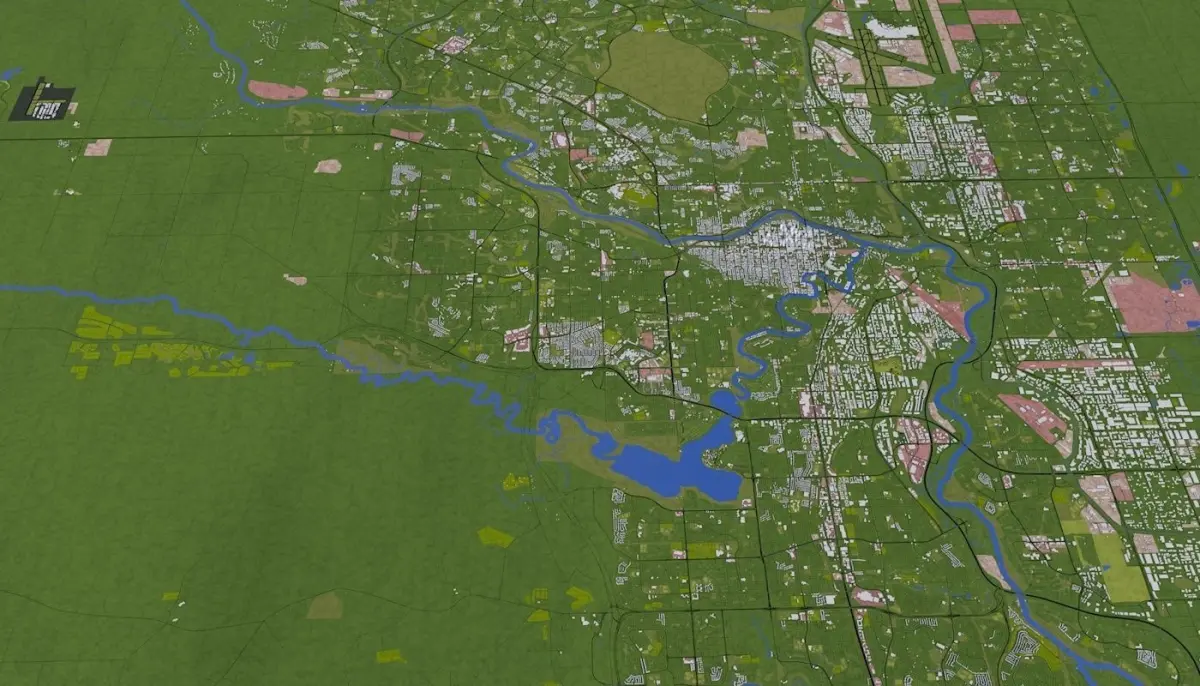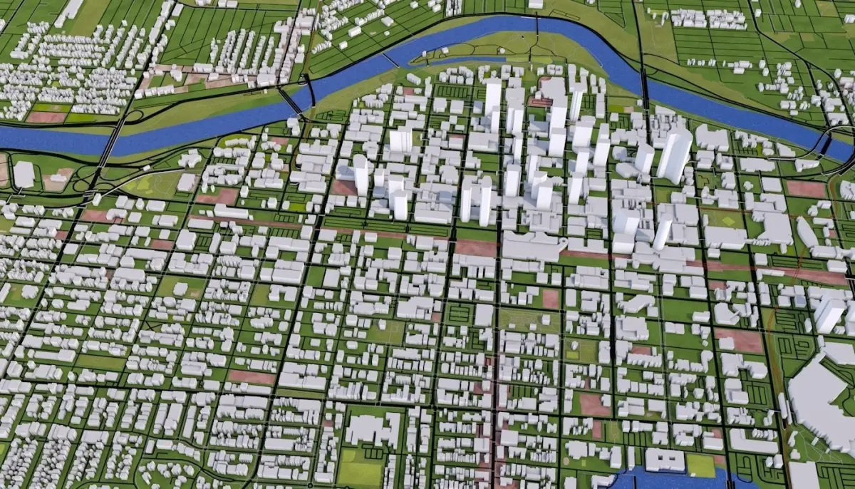 3D representation of Calgary City in Canada_USA using 2019 map data. Roads, railway, land, water, buildings are made using real world data. Buildings are accurately placed and resembles the real world object up to some extend. Please note that random buildings (varying height) are added to those area where real world data is not available.