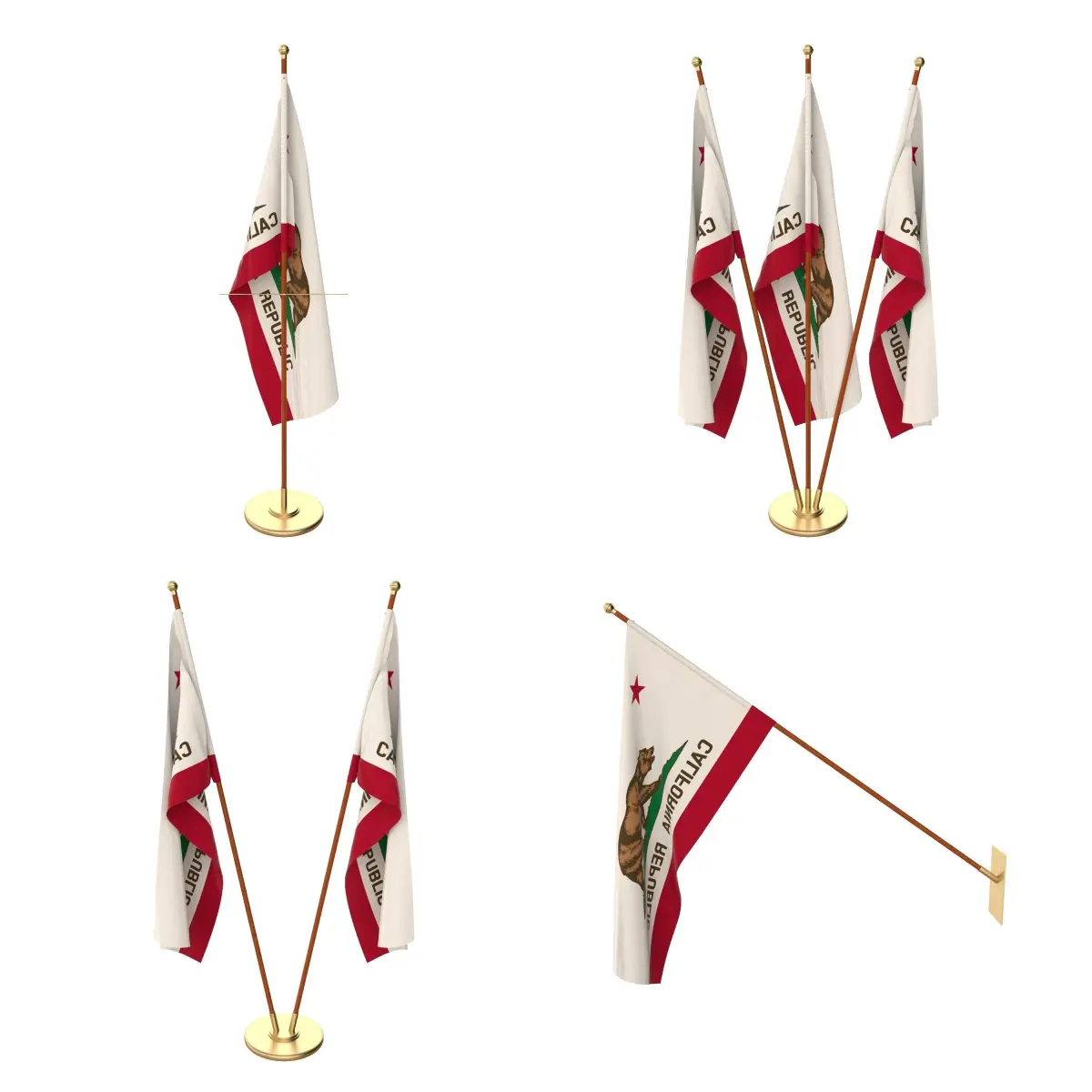 Set of four flag setups(exterior flag and three different office flags).