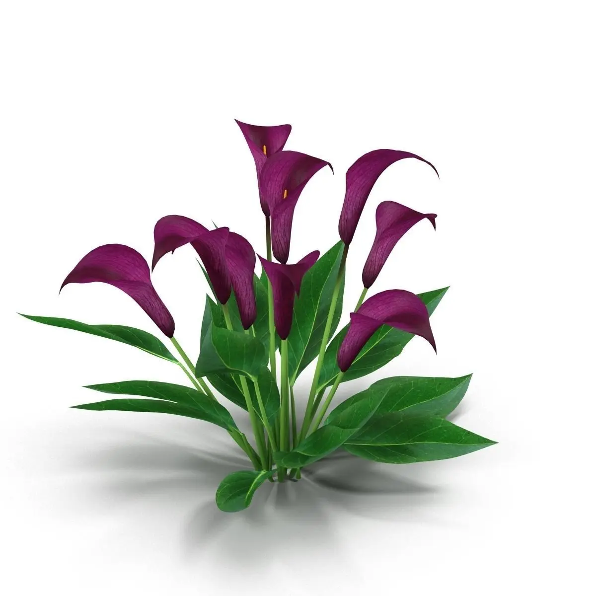 Photorealistic highly detailed 3D model of Calla Lily. Ideal for making variety in the interior and exterior scenes. All textures included. Final images rendered with vray.The scene also included a standard material (Scaneline).