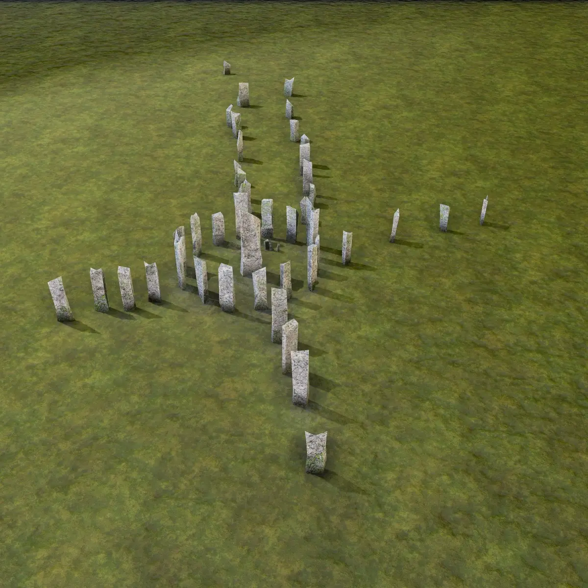 Low poly model of a The Standing Stones of Callanish - Isle of Lewis, Outer Hebrides, Scotland, it is PBR with 4k resolutions. This is a low poly model with 2665 polys. This is an ideal opportunity to decorate your scene with an object that will be in other plans, and that would be seen from a long distance. All dimensions are by ratio 1:1. The model has 1 daylight mode map.