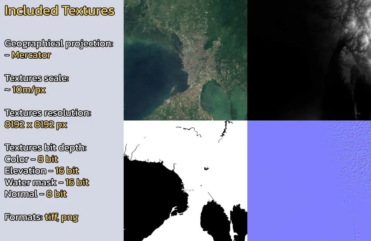 - Textures resolution: ~10m/px