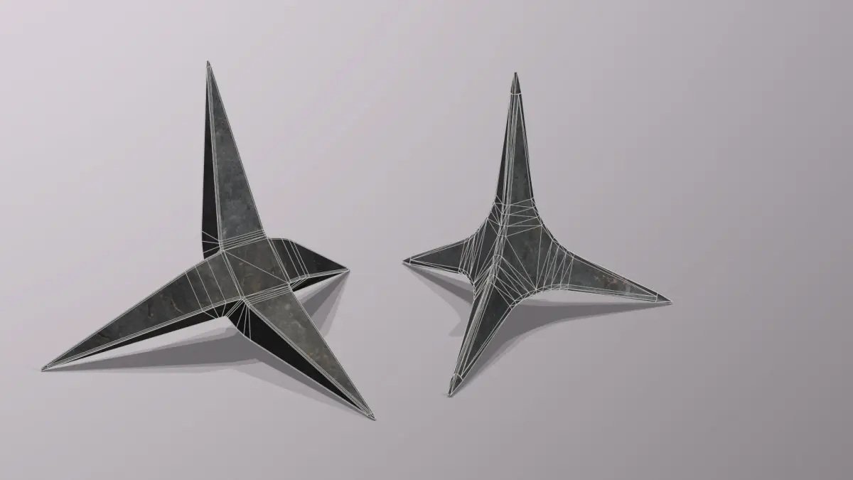 Enhance your virtual arsenal with these deadly and strategic tools of the ninja trade. Our Caltrops pack includes two variations: a star-like caltrop and a forged-like caltrop. Each meticulously designed and optimized for both gaming and rendering purposes, ensuring you can seamlessly integrate them into your projects.