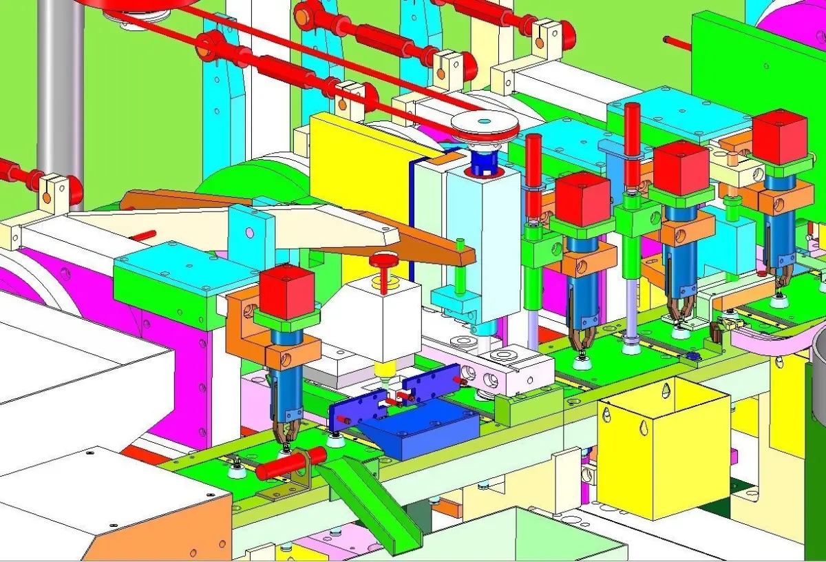 This is an automatic machine drawing of a non-standard automation product. The plastic is fed by the vibration plate. The main sources of power are cylinders and motors. Cam mechanism, high production efficiency, stable equipment operation