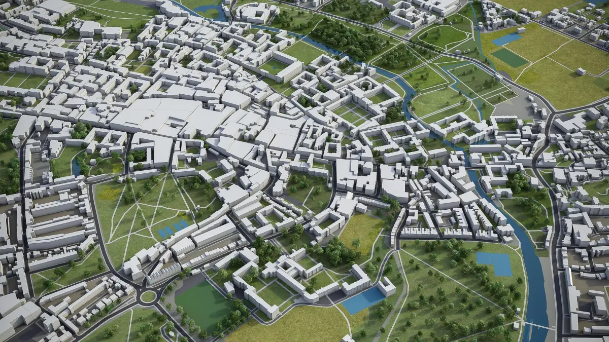 - Full city extents up to 100 x 100 km — or crop to an area of interest for better format compability and scene performance
