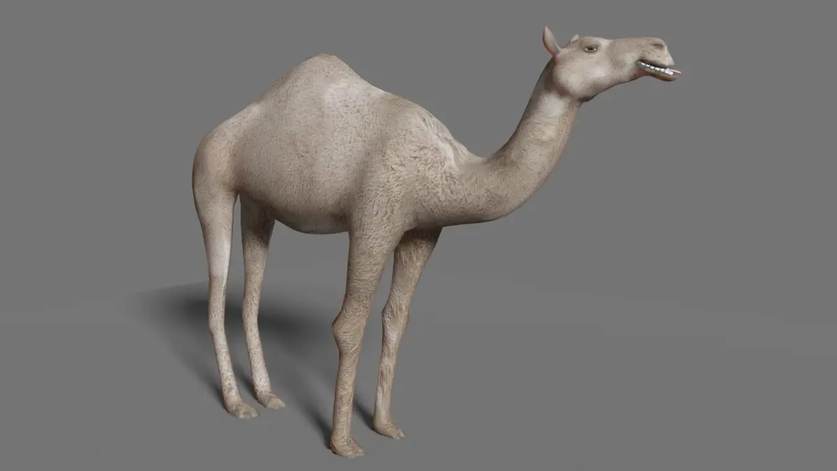 3d model of a camel in multiple file formats. This is a lowpolygon model of a camel made for games and movies. It can be easily rigged in any 3d program of your choice. If you format is not listed you could ask for format conversion also. All the textures are pbr and in the blender , glb and gltf formats they come embedded and for the rest of the formats the textures have been included in a seaprate textures folder provided with each of the formats. the textures size is 4096x4096. THe model has a clean topology and only a single UV has been created for convenience.