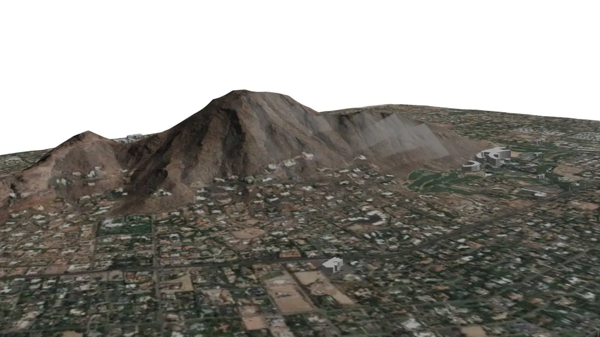 This is a digital 3D topographical model of Camelback Mountain in Phoenix, Arizona; created using Blender, an open source 3D modeling software tool which you may download from the Blender.Org site.