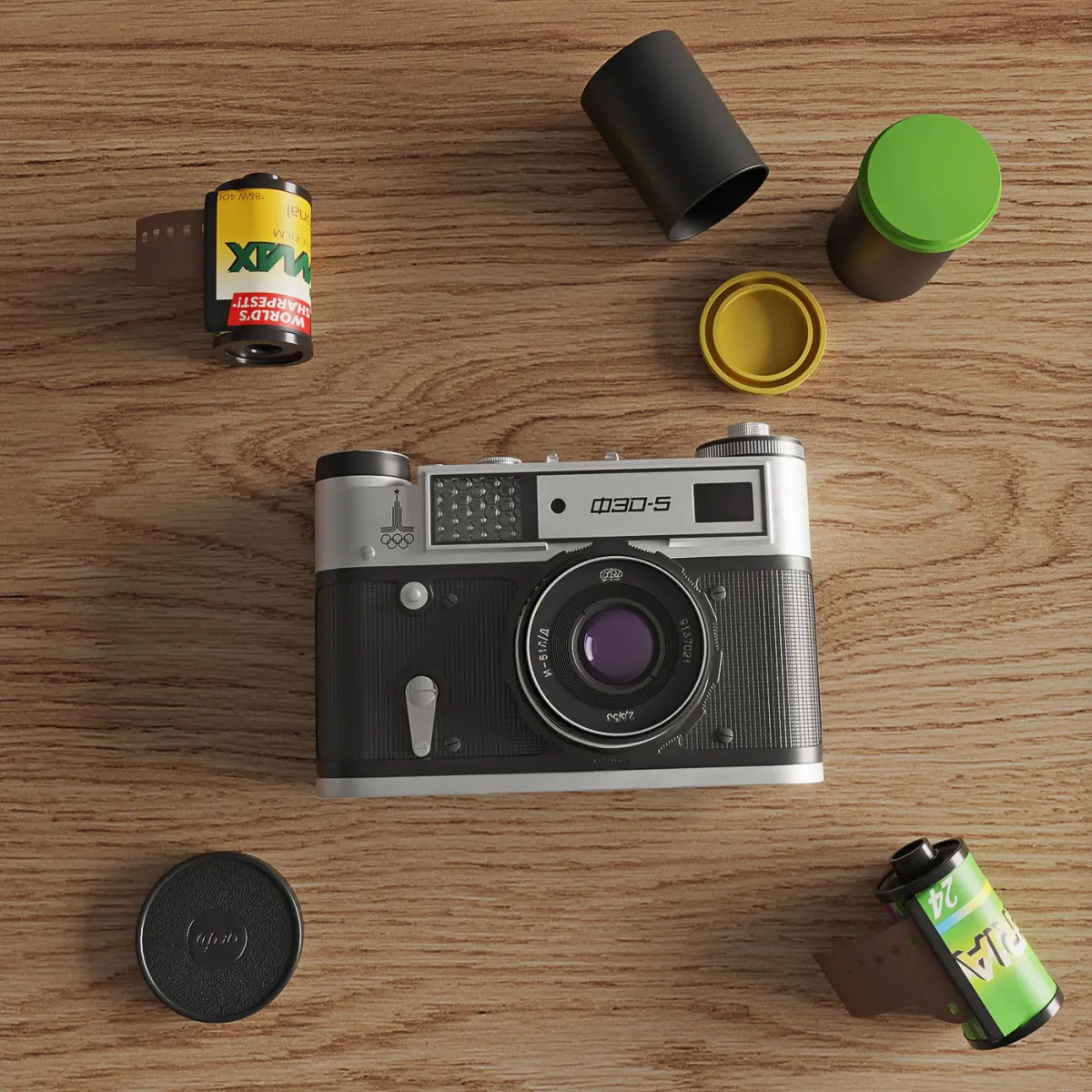 Soviet Camera Fed-5Special limited edition with the symbols of the XXII Summer Olympic Games in Moscow.